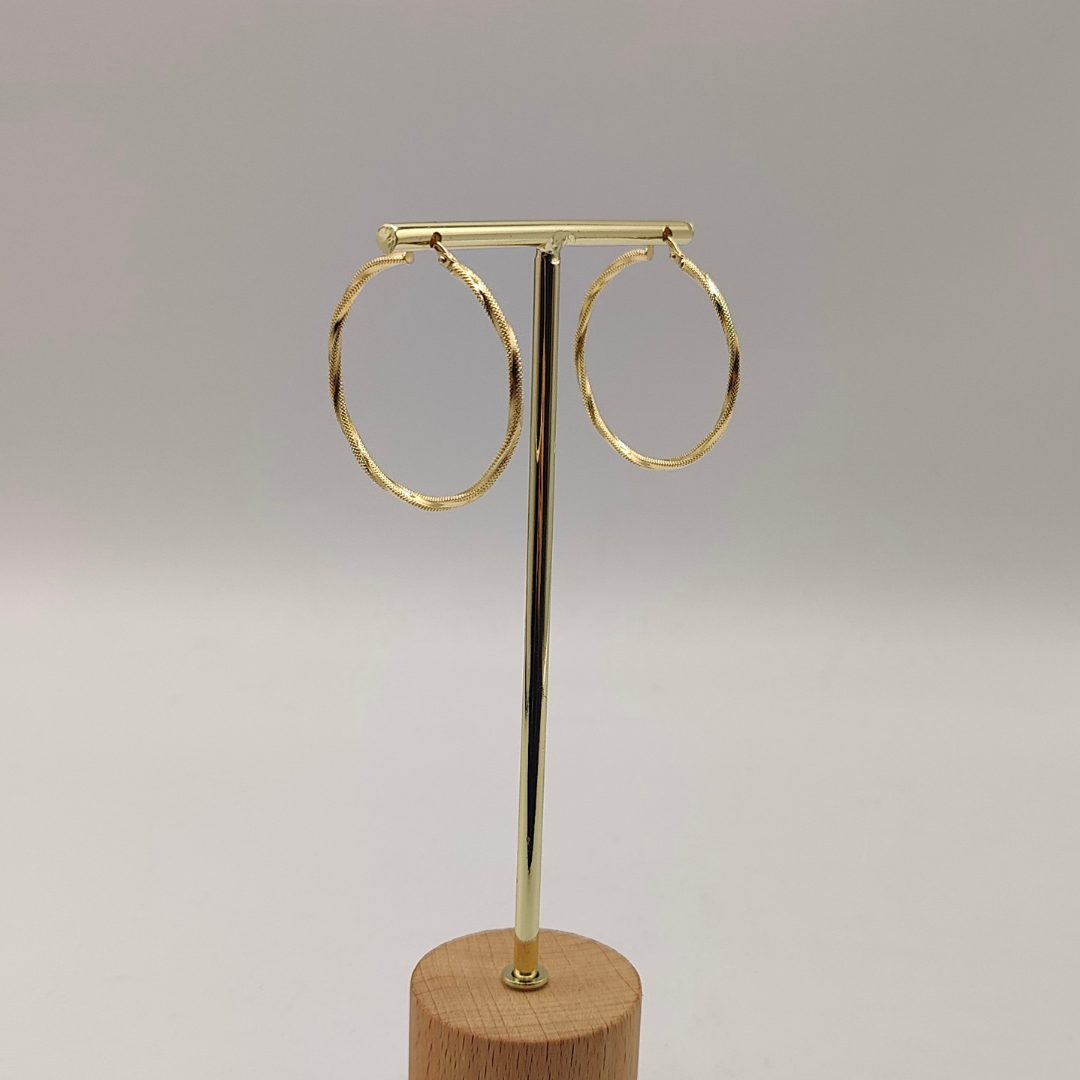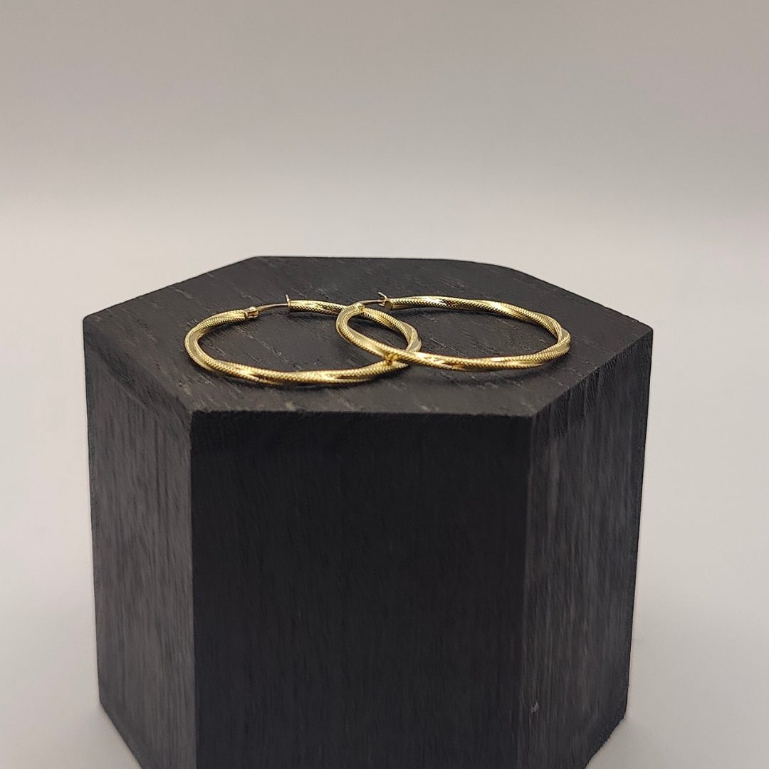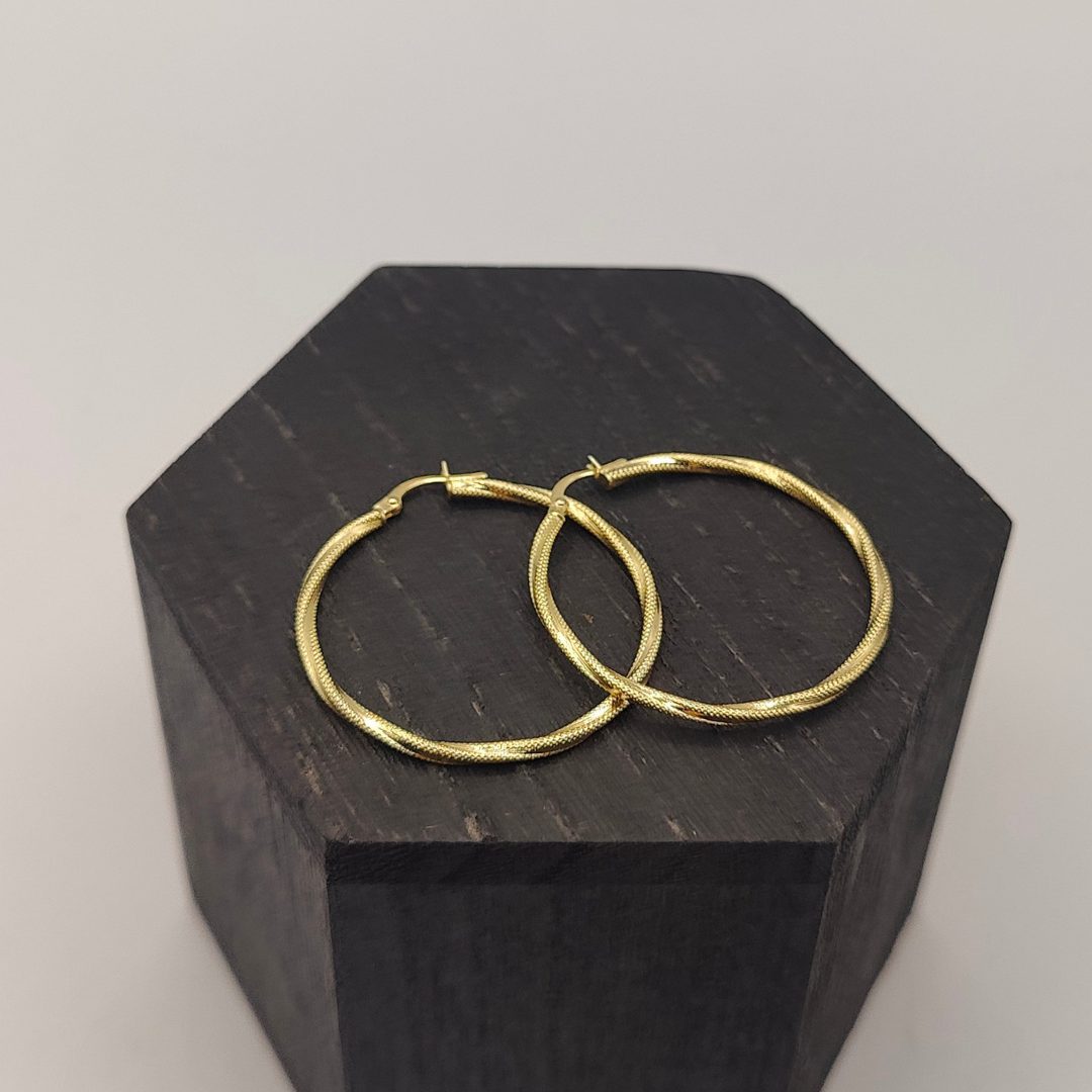 Pendiente aro rizado con textura combinando mate y brillo de 37 mm de diámetro en oro de 18k