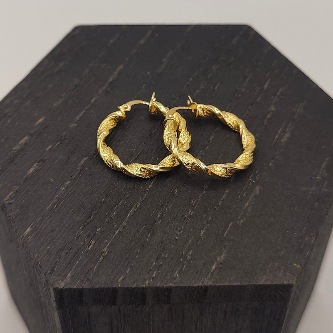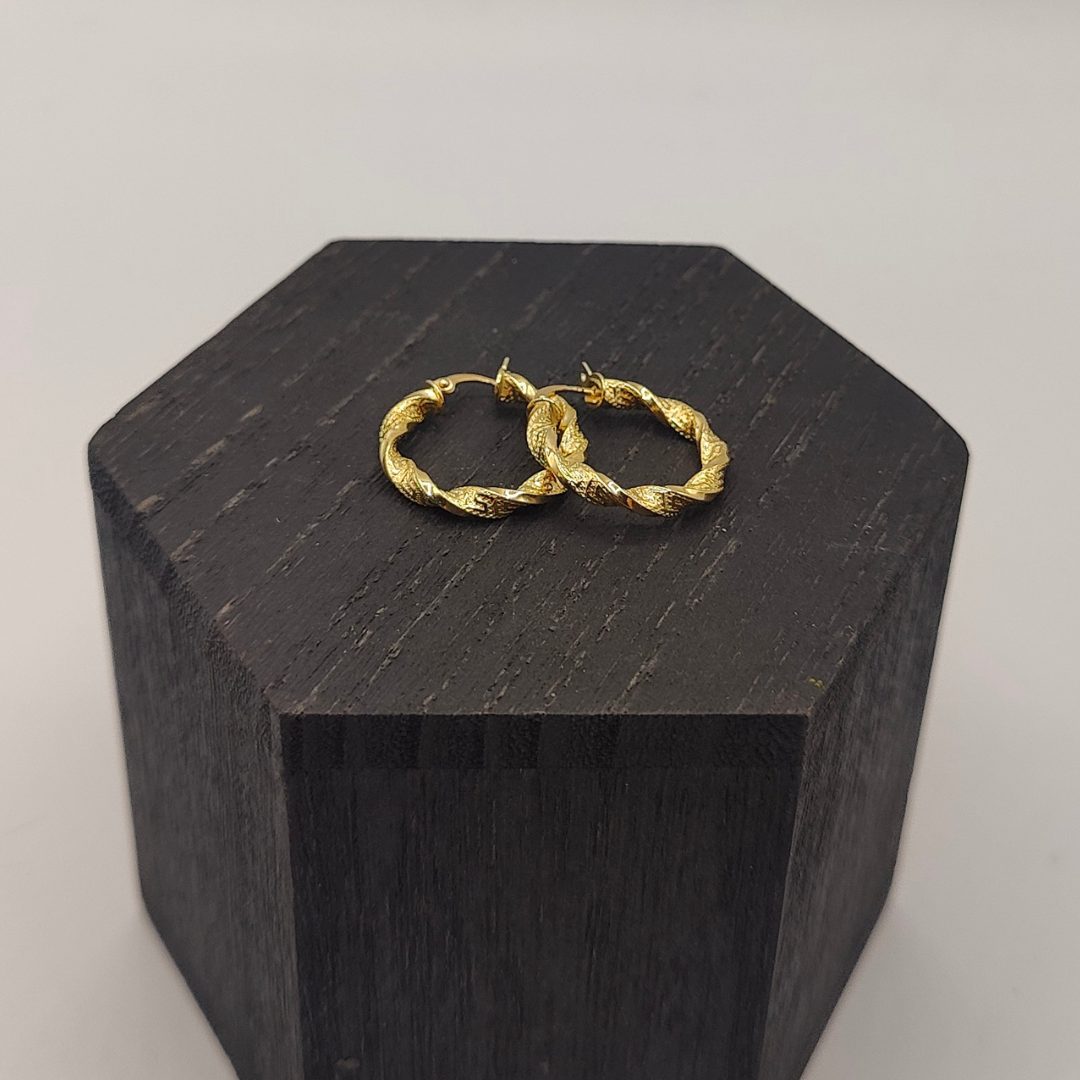 Este impresionante pendiente aro rizado, inspirado en el exclusivo estilo Versace, presenta un diseño dinámico y sofisticado con un diámetro de 20 mm. El rizado en el aro aporta una textura única y moderna, mientras que el oro de 18 quilates le confiere una elegancia atemporal.