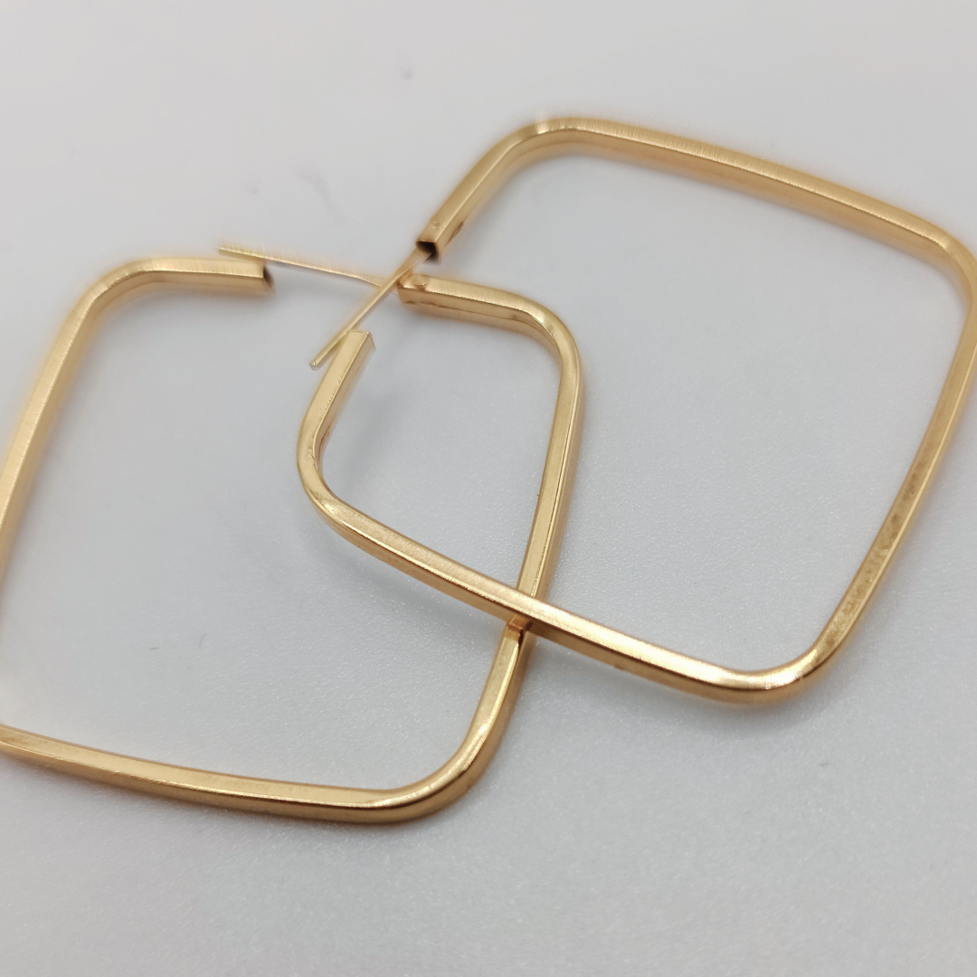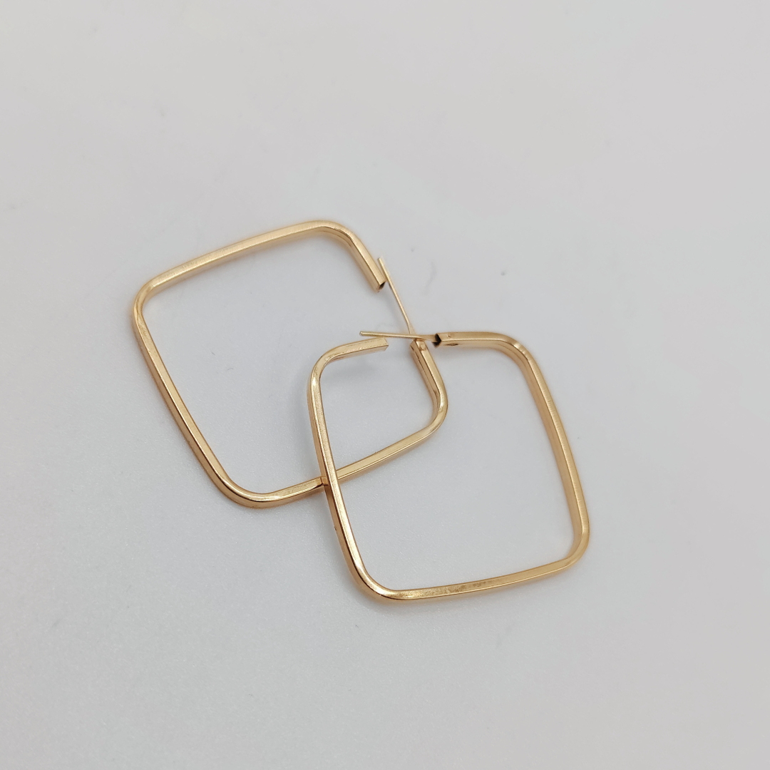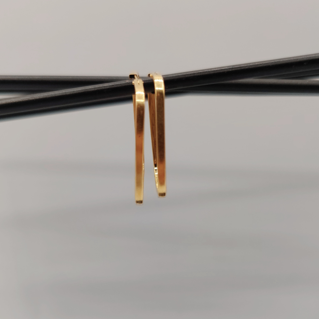 Este pendiente de aro cuadrado, elaborado en oro de 18 quilates, destaca por su diseño sofisticado y elegante. Su estructura se cierra en sí misma.