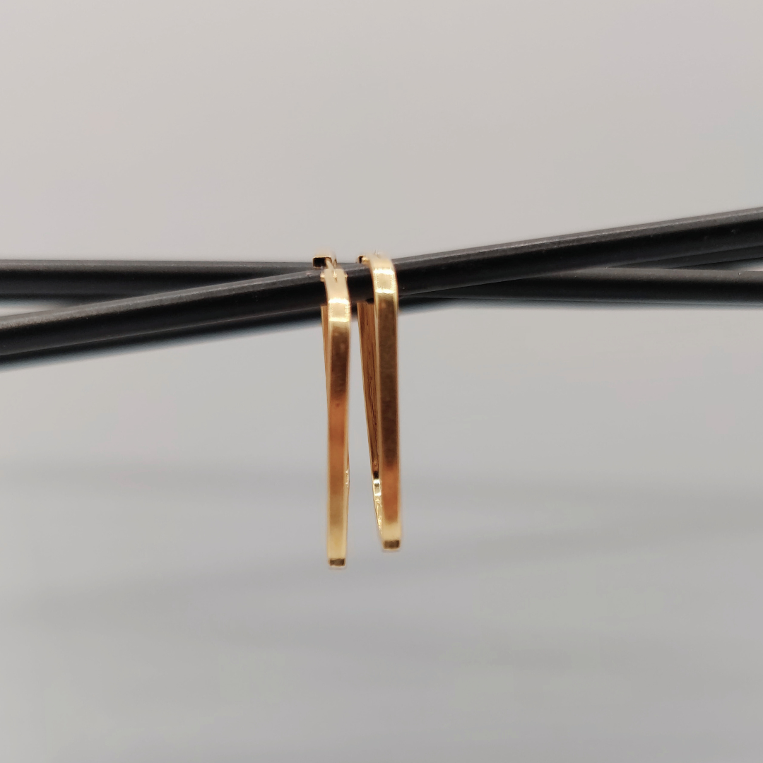 Este pendiente de aro cuadrado, elaborado en oro de 18 quilates, destaca por su diseño sofisticado y elegante. Su estructura se cierra en sí misma, proporcionando un ajuste seguro y cómodo. Ideal para quienes buscan un accesorio moderno con un toque de distinción.