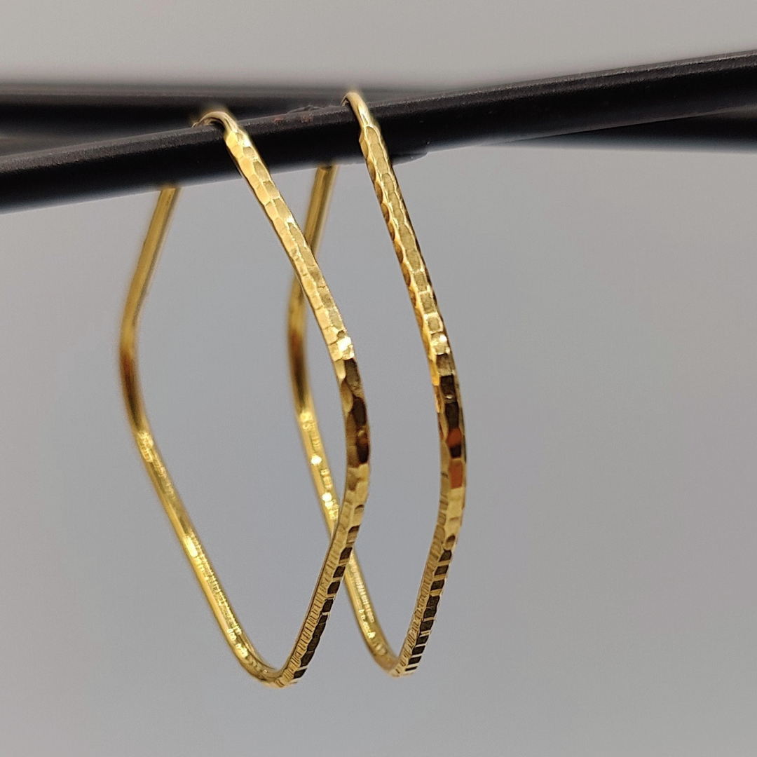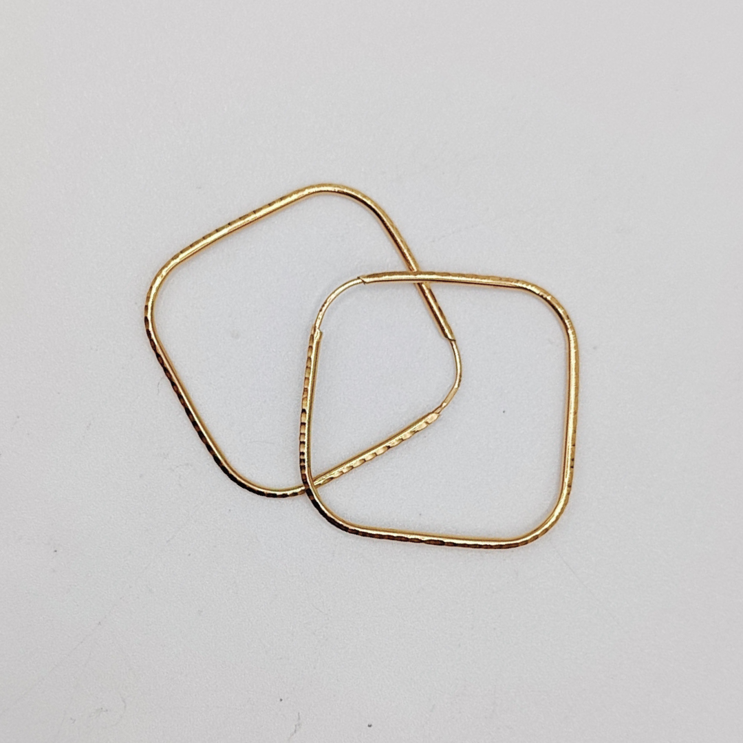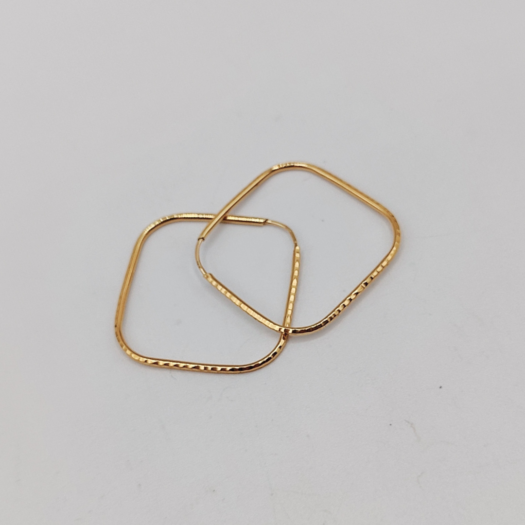 Pendiente de Aro Cuadrado Estriado en Oro de 18K