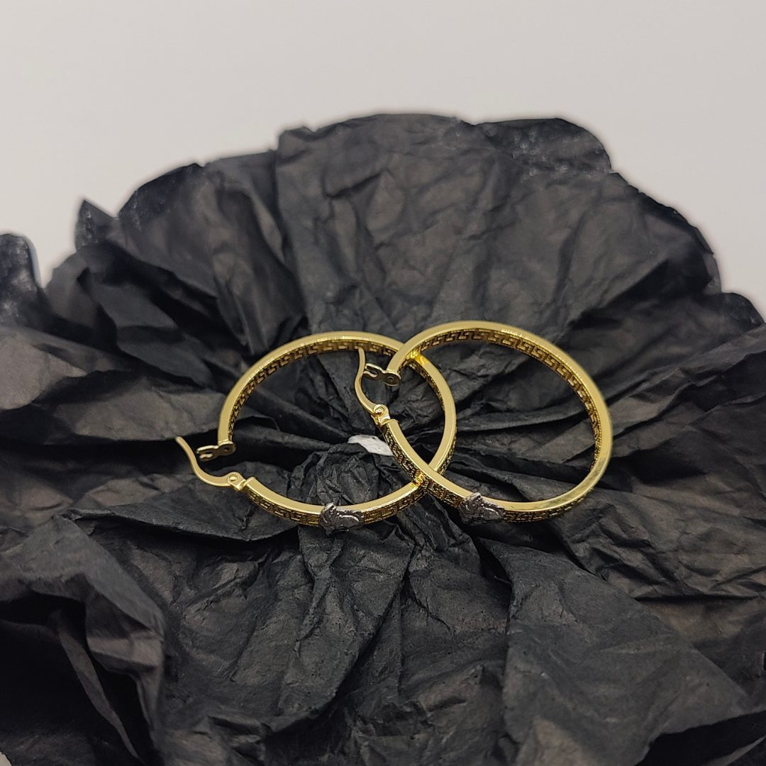Este pendiente de aro de 2,9 cm de diámetro y 2 mm de ancho combina lujo y sofisticación, presentando la icónica cara de Medusa, un emblema del estilo Versace.