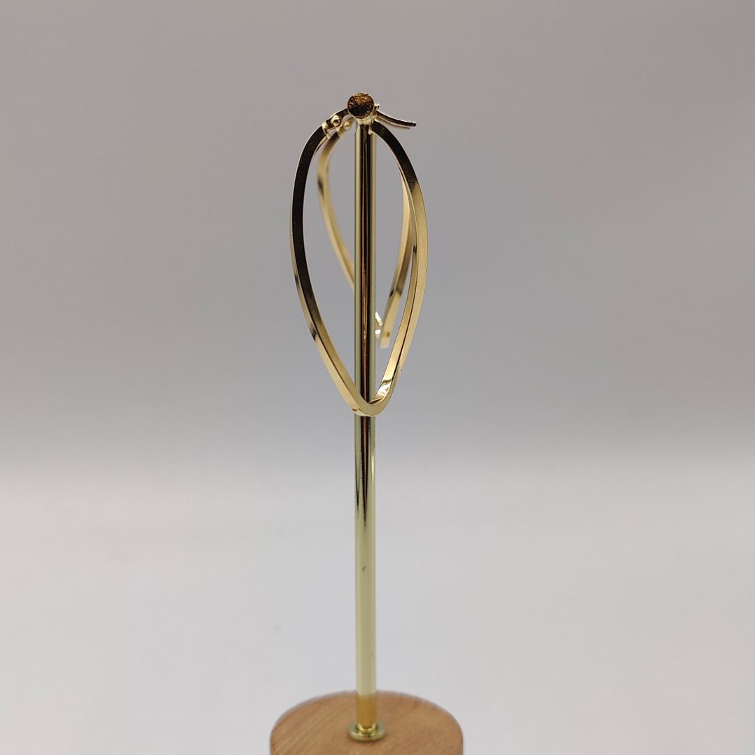 Elegancia y originalidad en un solo diseño. Este pendiente de aro ovalado de 2,3 cm de diámetro presenta un sofisticado efecto doblado que le aporta dinamismo y estilo.