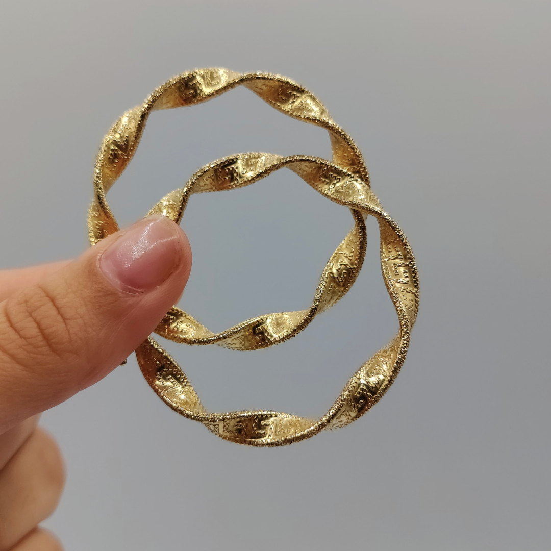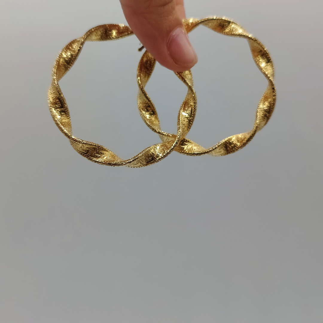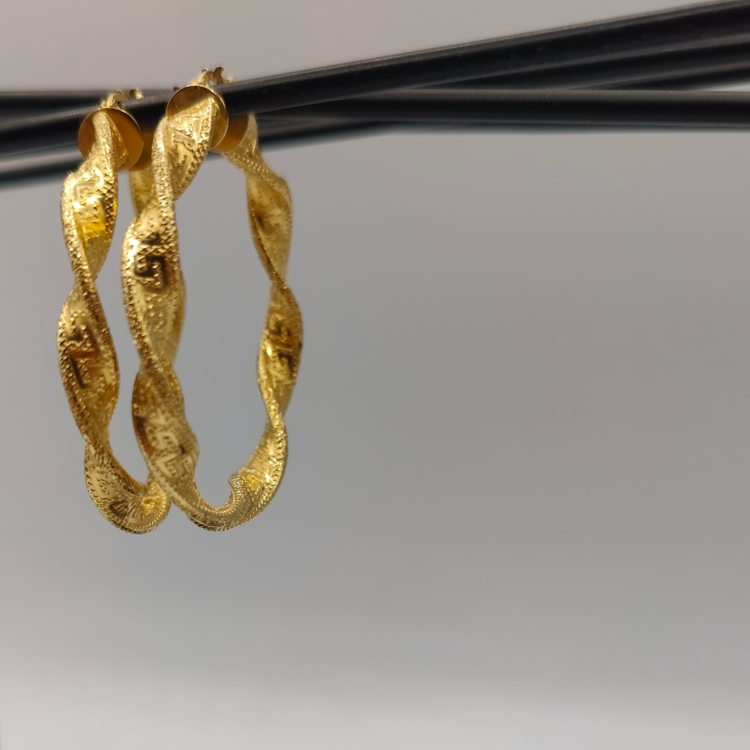 Este pendiente de aro rizado, inspirado en el estilo Versace, destaca por su diseño distintivo y elegante. Con un cierre hippy que ofrece comodidad y seguridad.