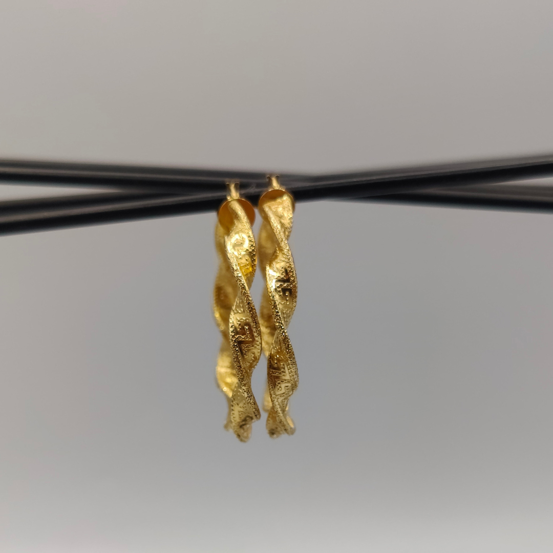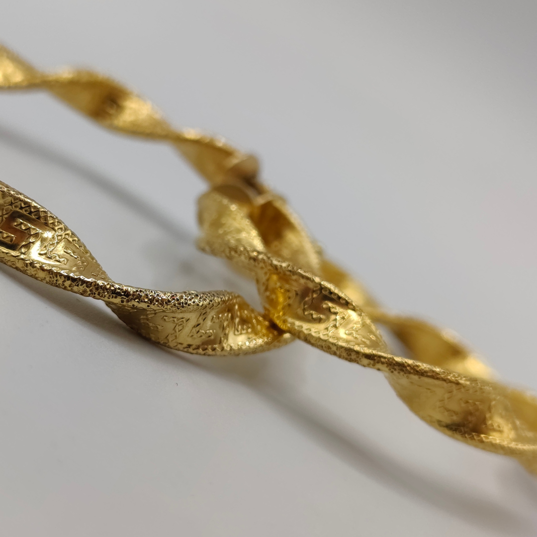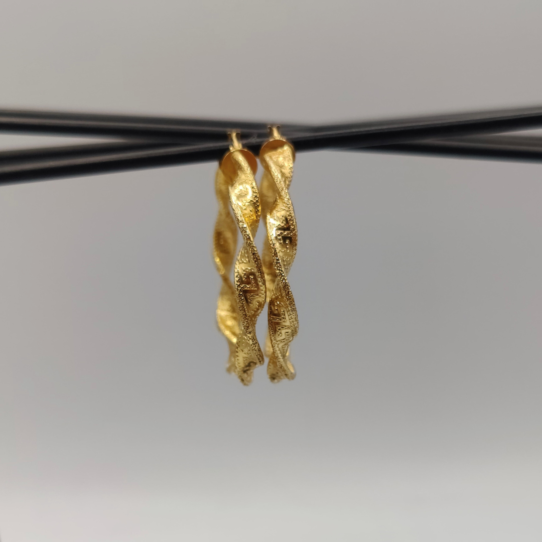 Este pendiente de aro rizado, inspirado en el estilo Versace, destaca por su diseño distintivo y elegante. Con un cierre hippy que ofrece comodidad y seguridad.