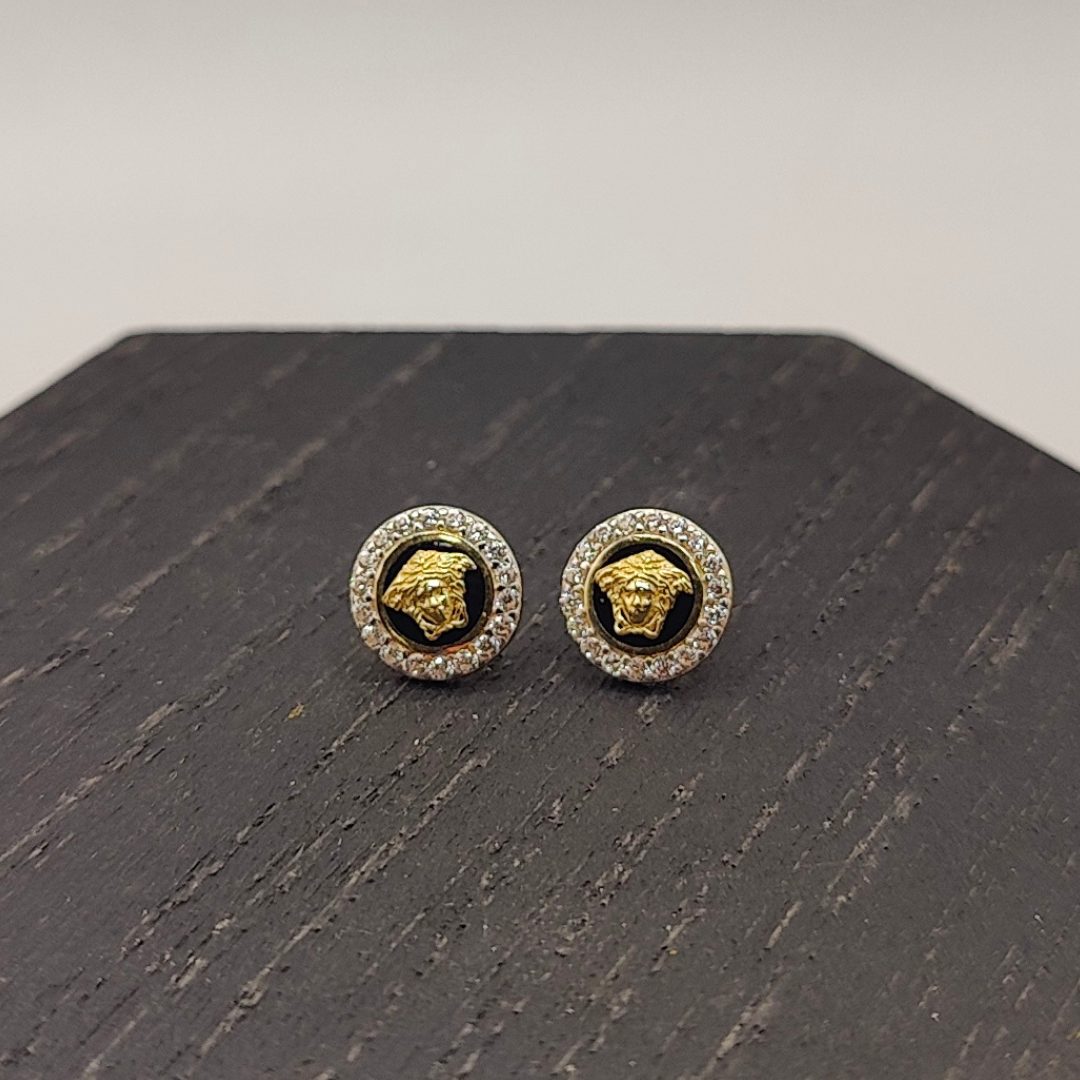 Pendiente estilo Versace con circonitas en oro de 18k