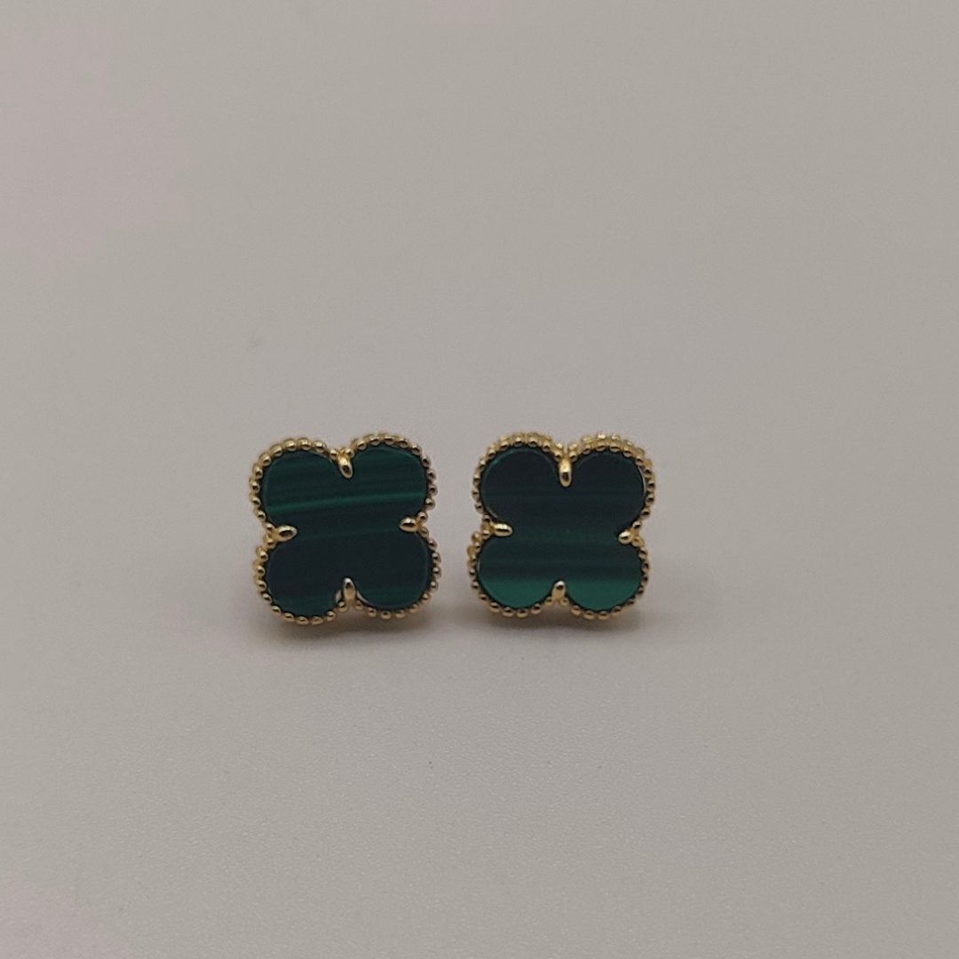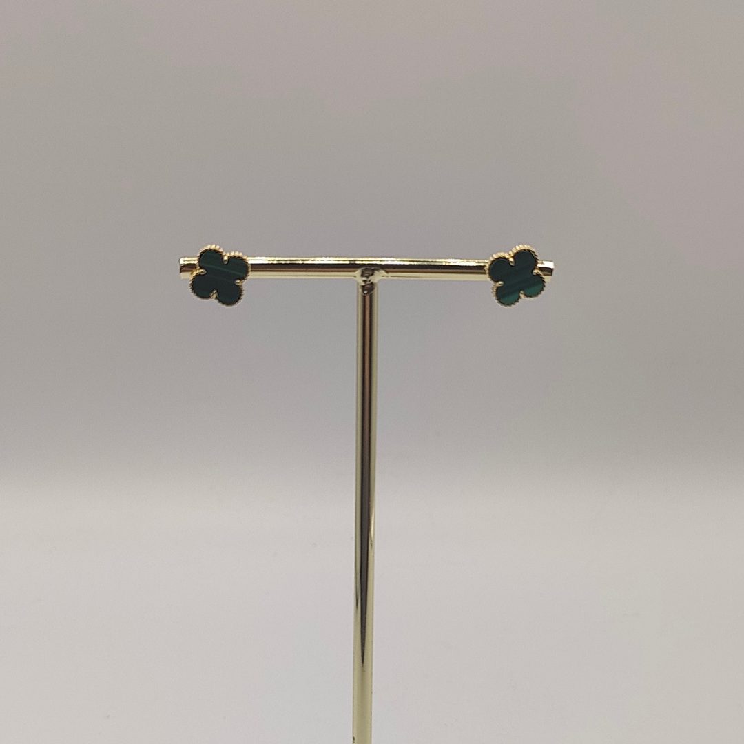 Pendiente flor estilo Van Cleef con malaquita y oro de 18k
