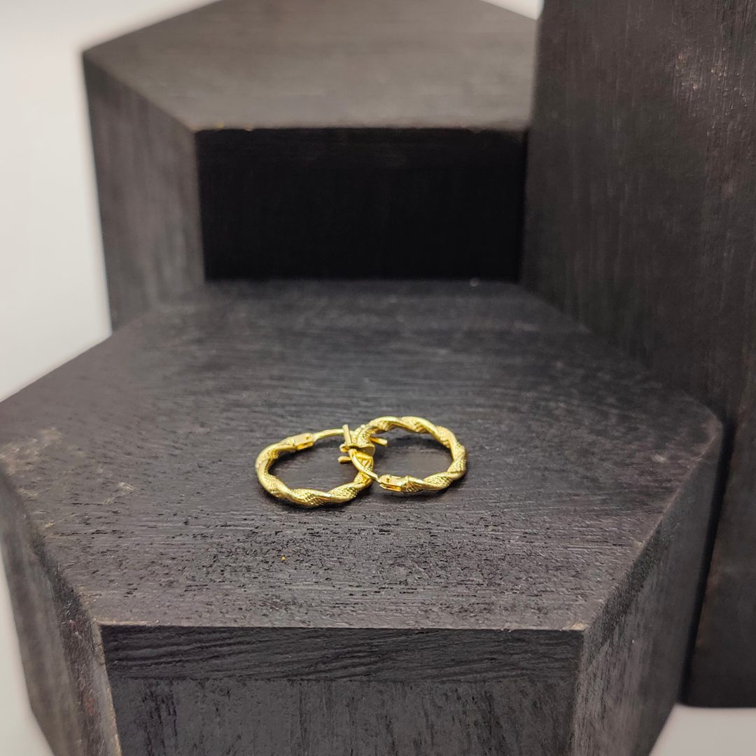 Pendiente Mini Aro Rizado con Textura de Oro 18K