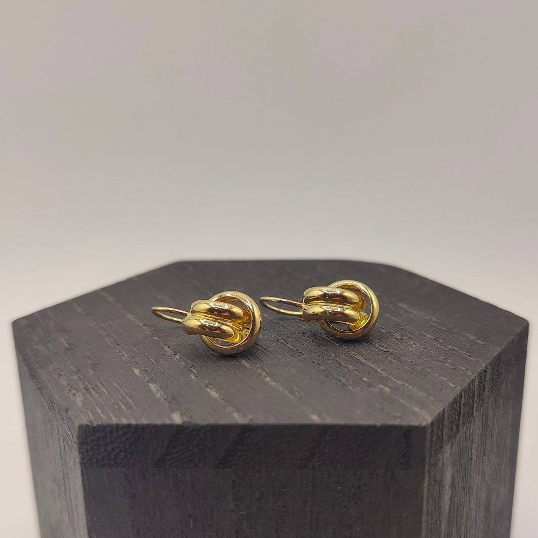 Un diseño elegante y minimalista que captura la esencia del estilo sofisticado. Estos pendientes colgantes en forma de nudo, fabricados en oro de 18K