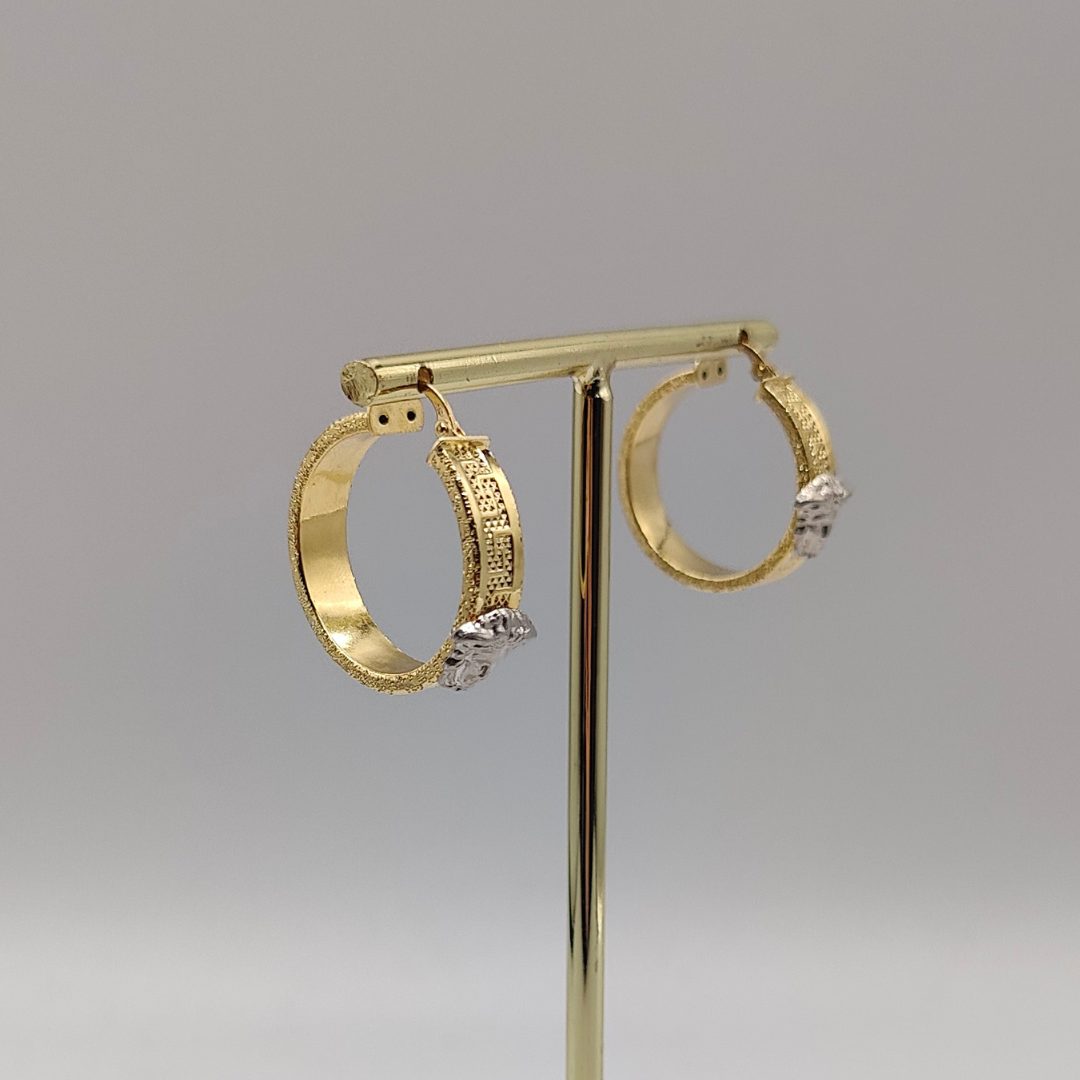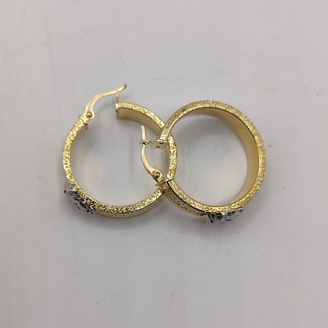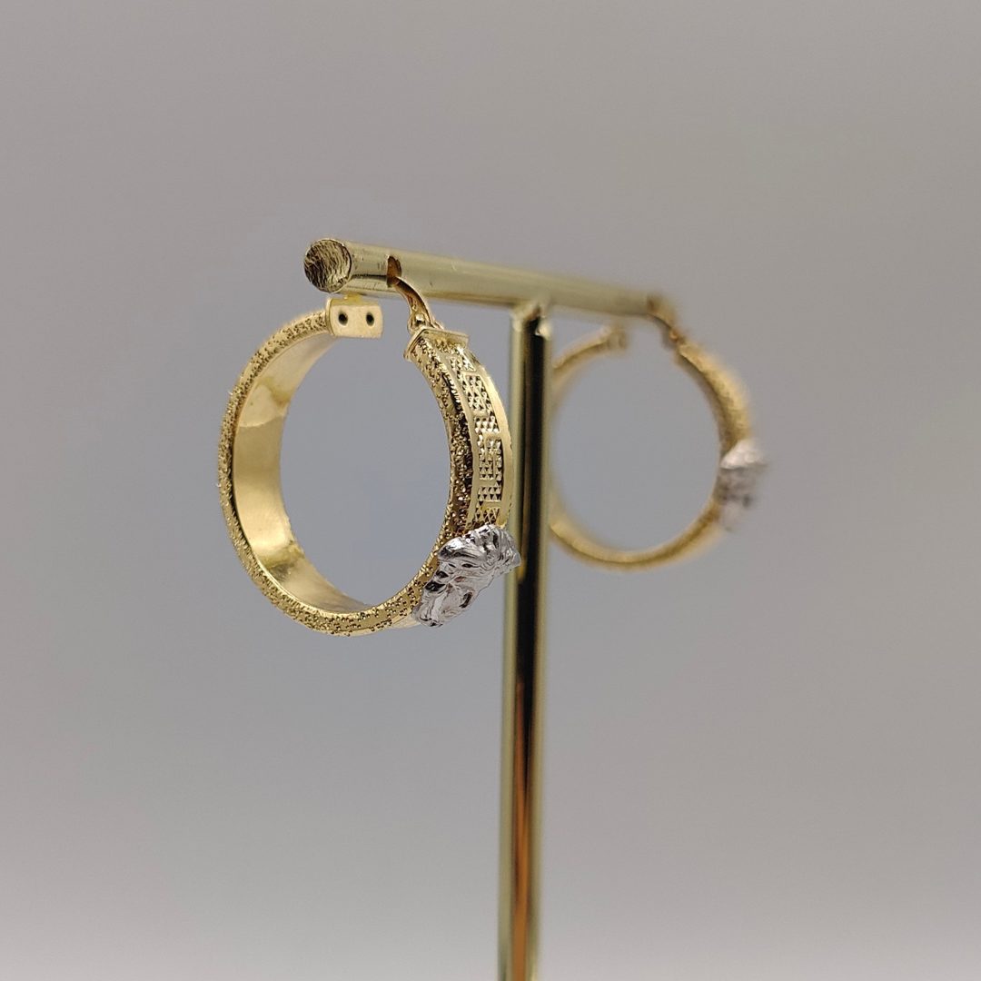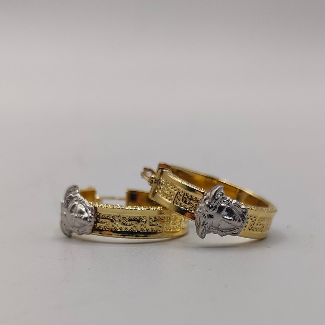 Inspirados en la elegancia atemporal, estos pendientes de aro de 2,5 cm de diámetro y 6 mm de ancho destacan por su acabado brillante y el icónico diseño de meandros en el centro, evocando el estilo inconfundible de Versace. Fabricados en oro de 18K, ofrecen un equilibrio perfecto entre lujo y sofisticación. Su cierre hippy garantiza comodidad y seguridad, convirtiéndolos en la elección ideal para quienes buscan un accesorio distinguido y versátil.