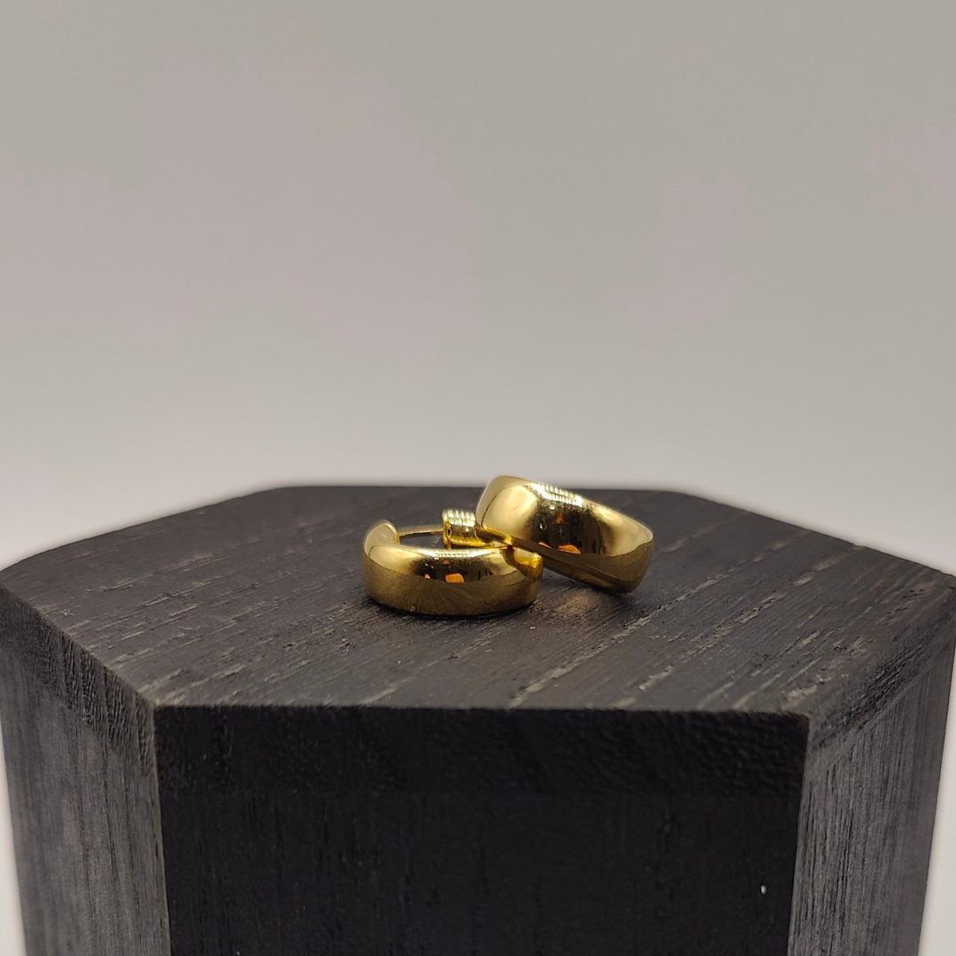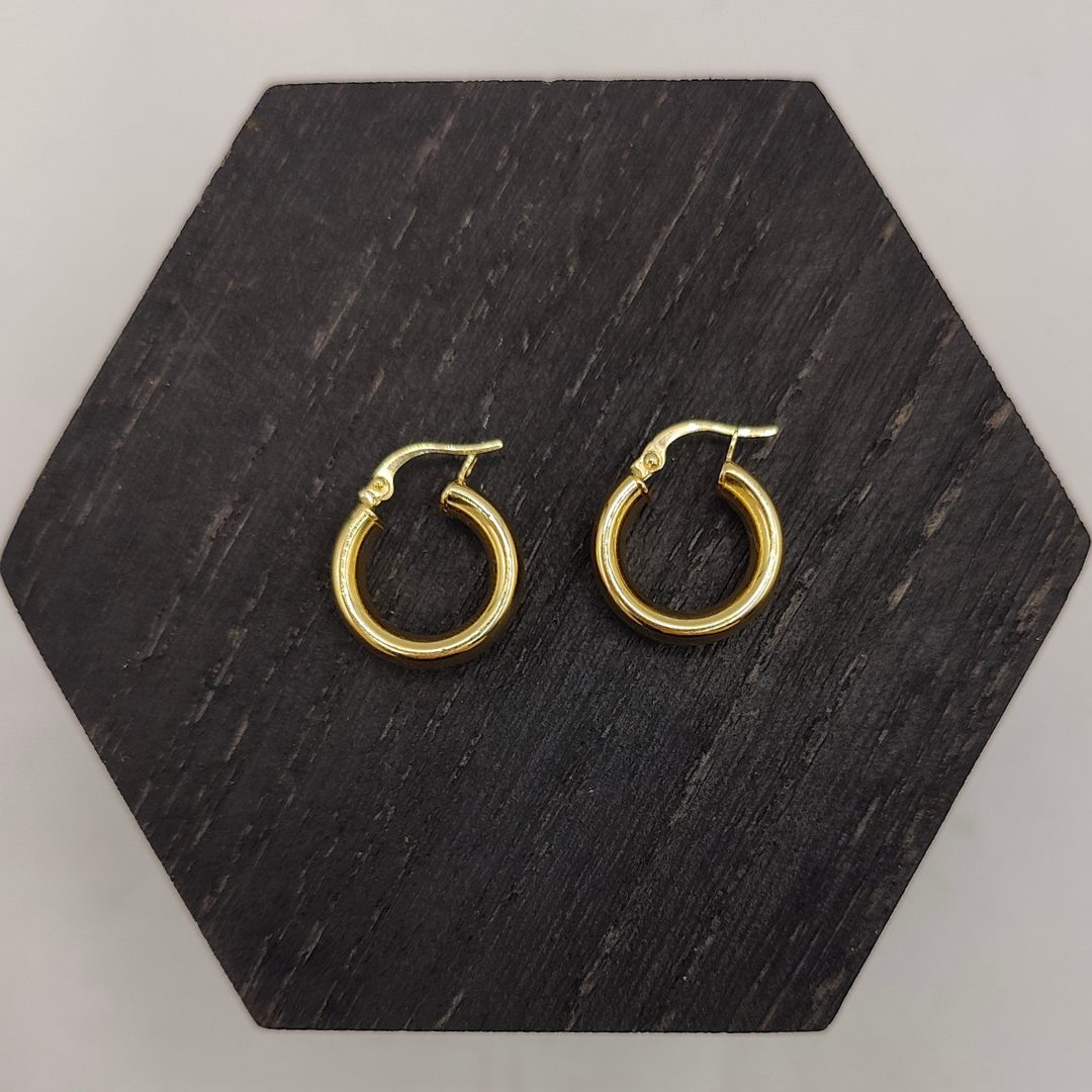 Descubre la sofisticación de nuestros pendientes de aro grueso en oro de 18 quilates . Con un diseño clásico y versátil, estos aros de 15 mm de diámetro y 6 mm de grosor son el complemento perfecto para cualquier ocasión.