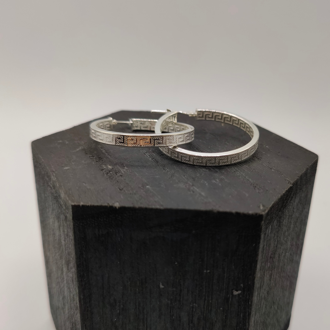 Pendiente de aro cuadrado estilo Versace, con un diámetro de 3,5 cm. Este distintivo accesorio combina un diseño geométrico moderno con el glamour.