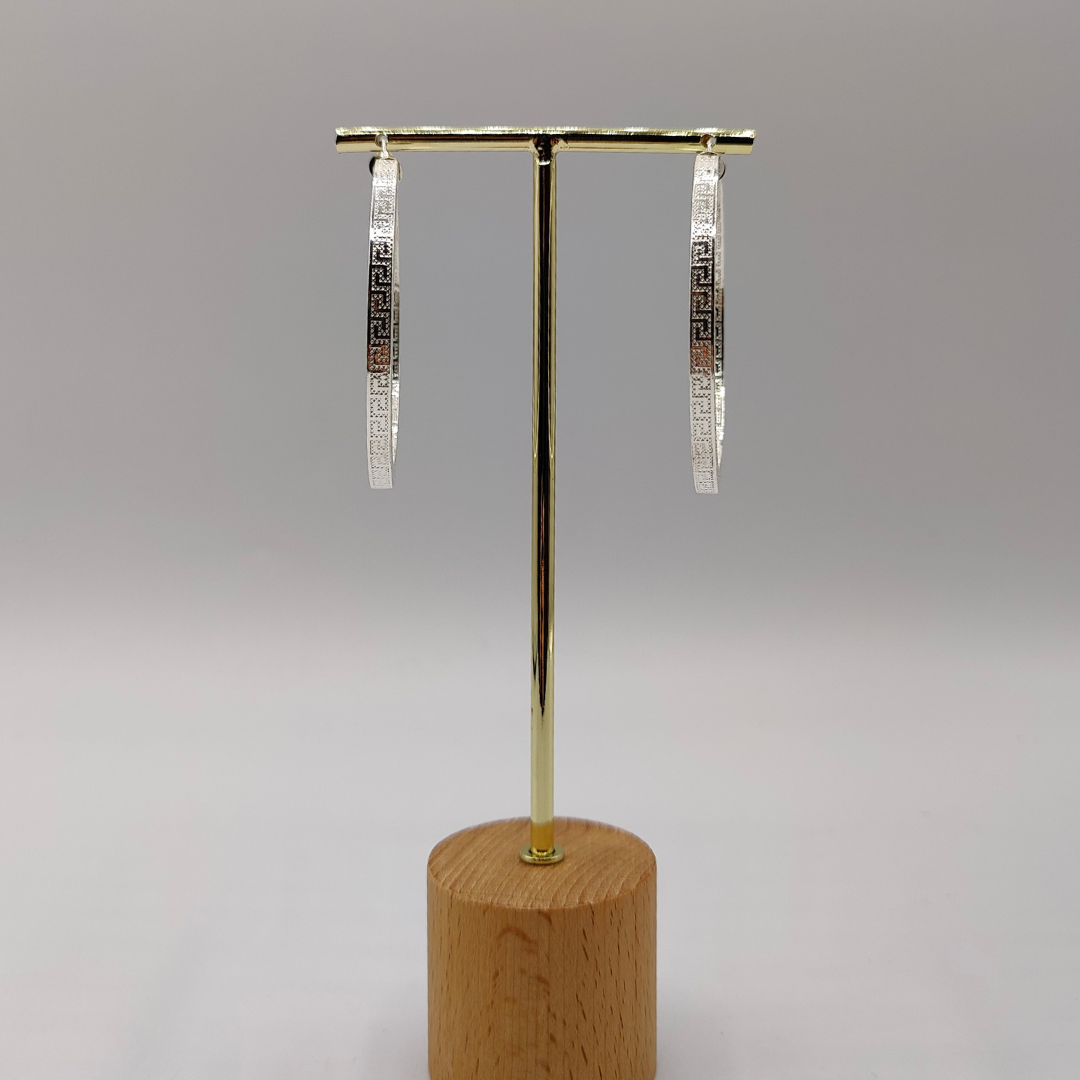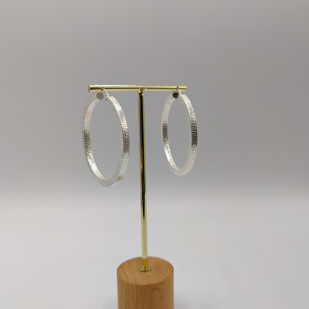 Agrega un toque de distinción a tu estilo con estos atractivos Pendientes Aro Cuadrado Tipo Versace con un diámetro de 5,7 cm.