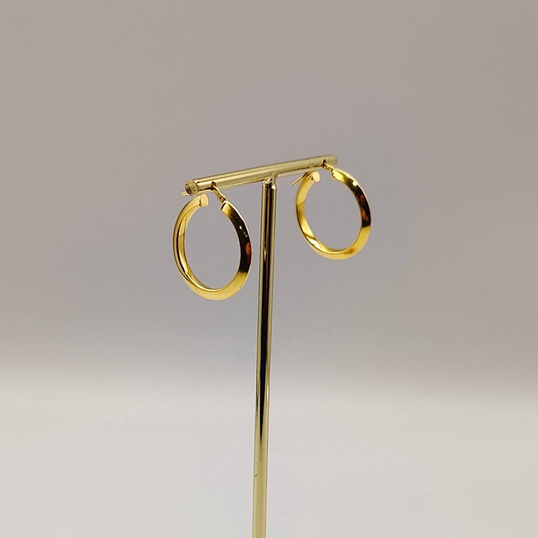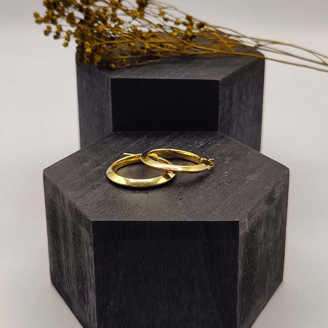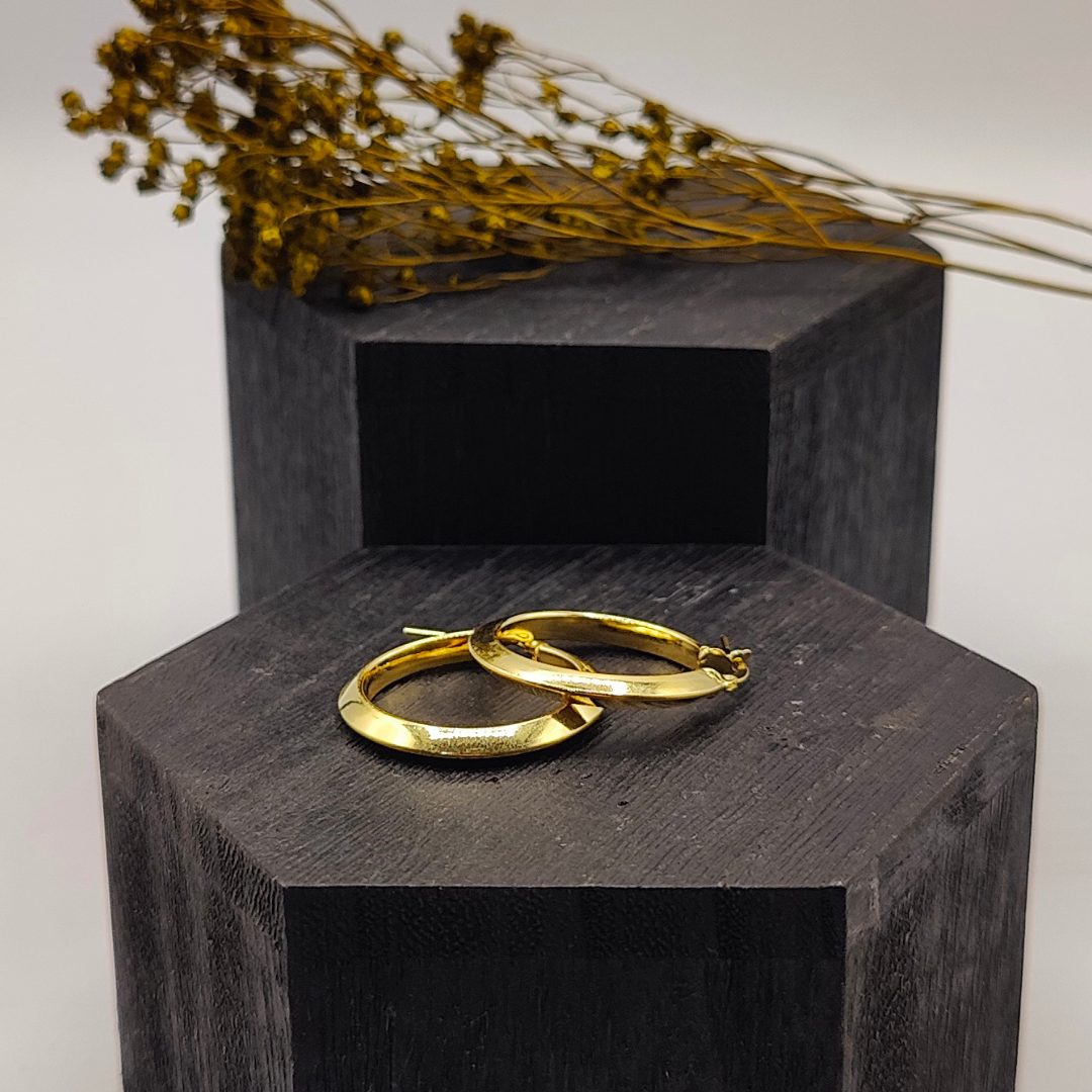 Este elegante pendiente en forma de aro está elaborado en plata de alta calidad y recubierto con una capa de oro, lo que le otorga un brillo cálido y cómodo. Su diseño clásico y atemporal lo convierte en un accesorio versátil, ideal tanto para el uso diario como para ocasiones especiales.