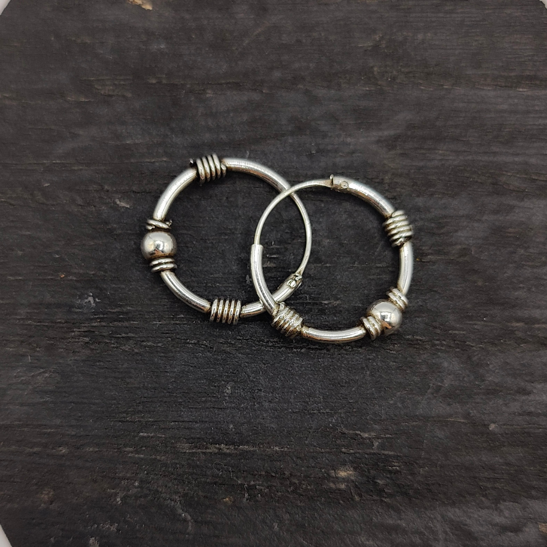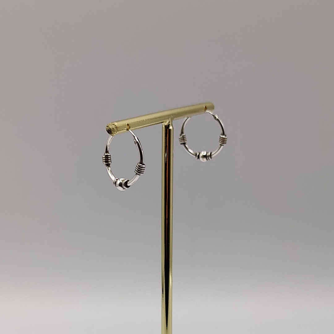 Pendiente de aro estilo Bali con un diámetro de 1,8 cm. Este accesorio exótico presenta un diseño artesanal que evoca la belleza y la cultura de la isla