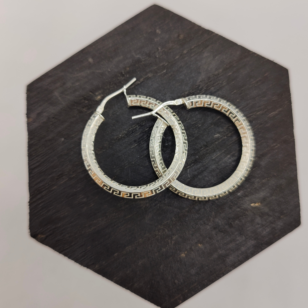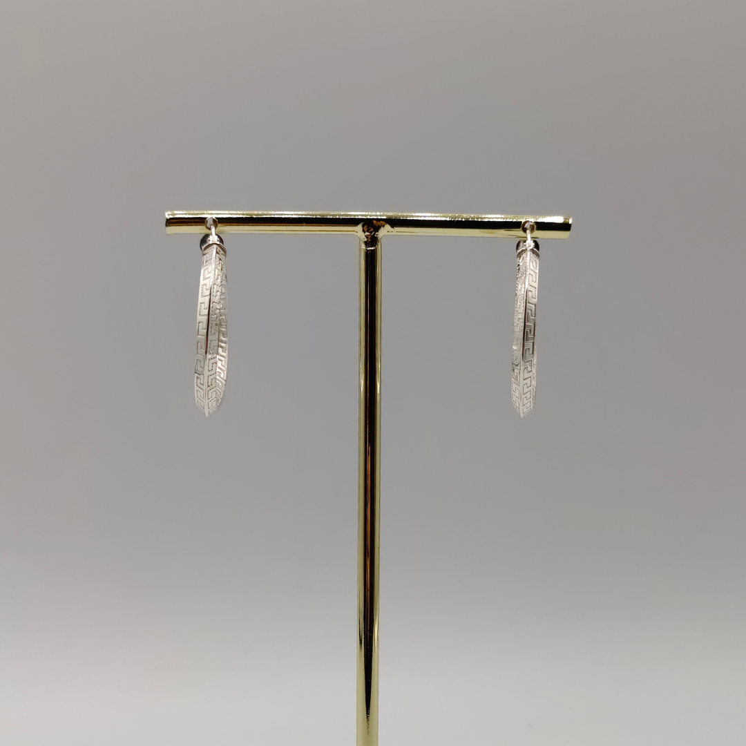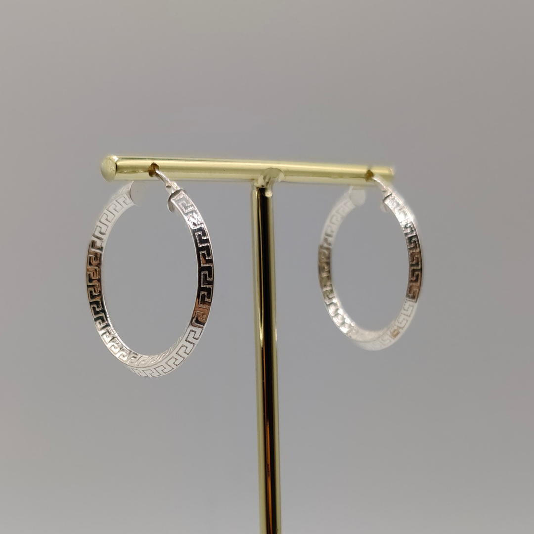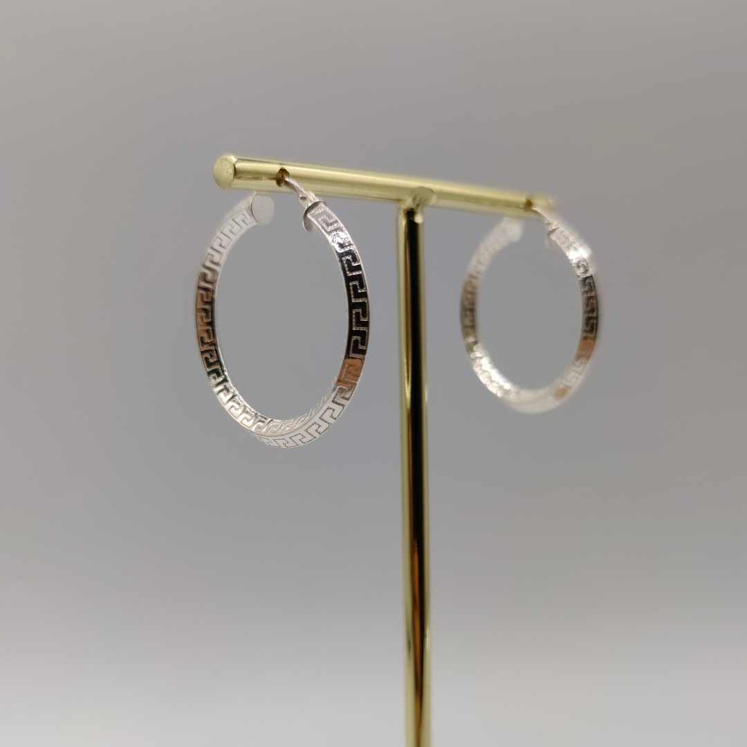 Pendiente de aro estilo Versace, con un diámetro de 3 cm. Este accesorio elegante y moderno destaca por su diseño icónico y acabado pulido