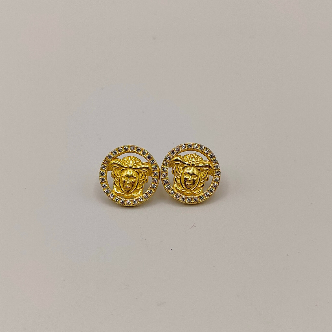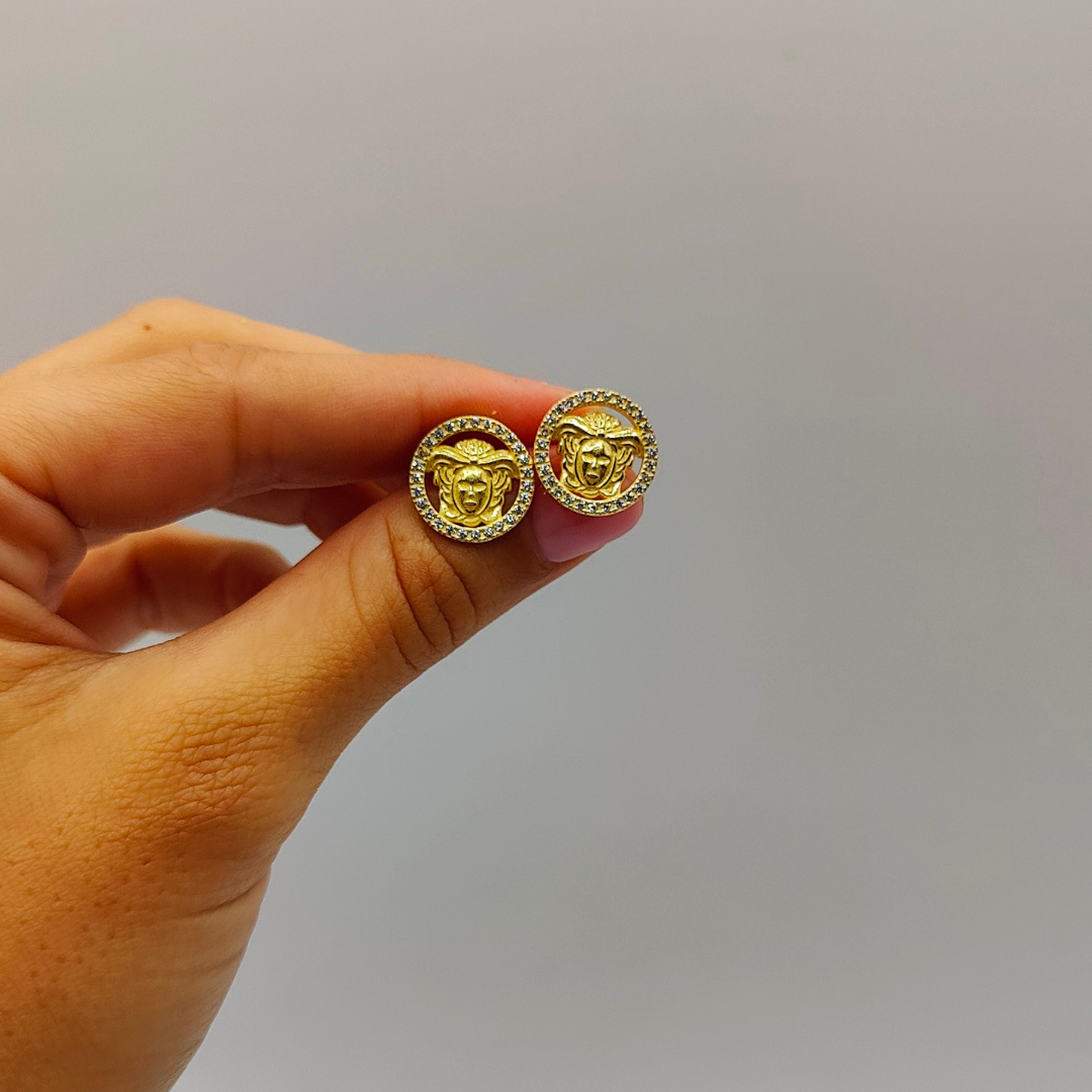 Estos pendientes están inspirados en el estilo audaz y emblemático de Versace, específicamente en la icónica cara de Medusa que caracteriza la marca.