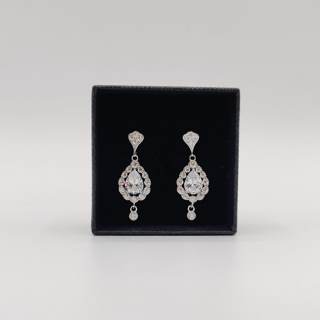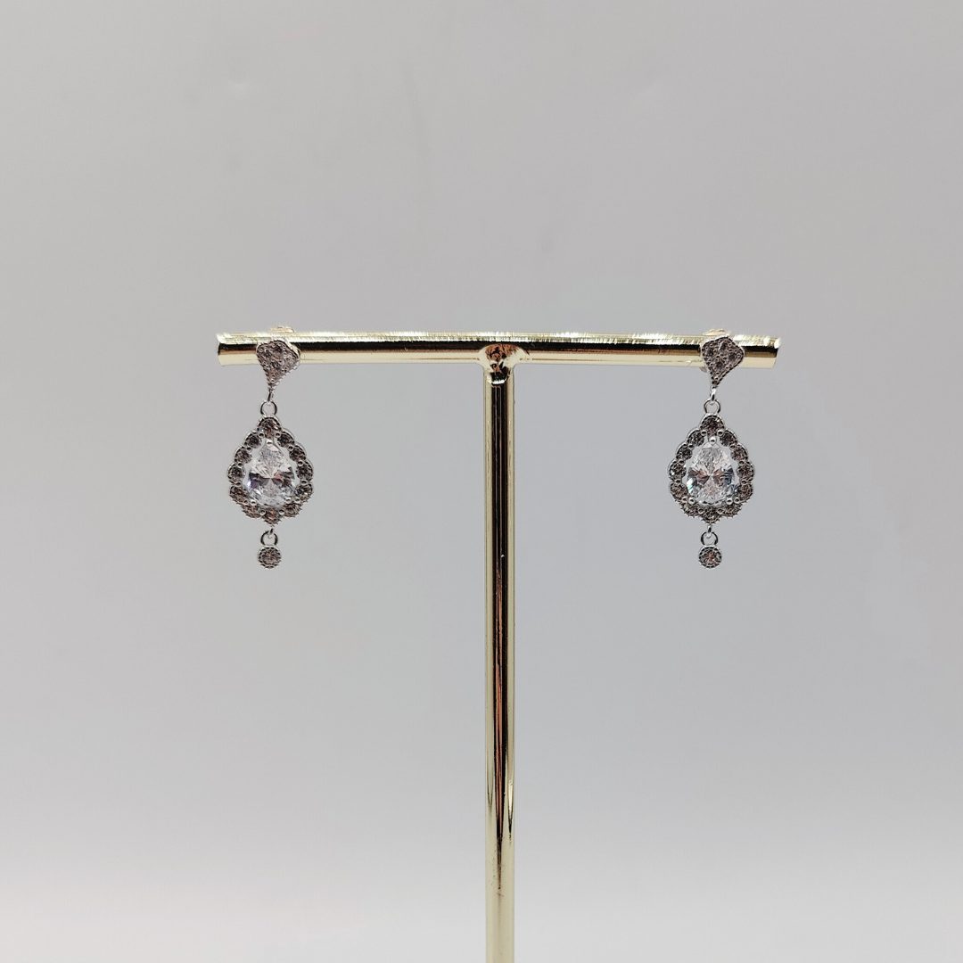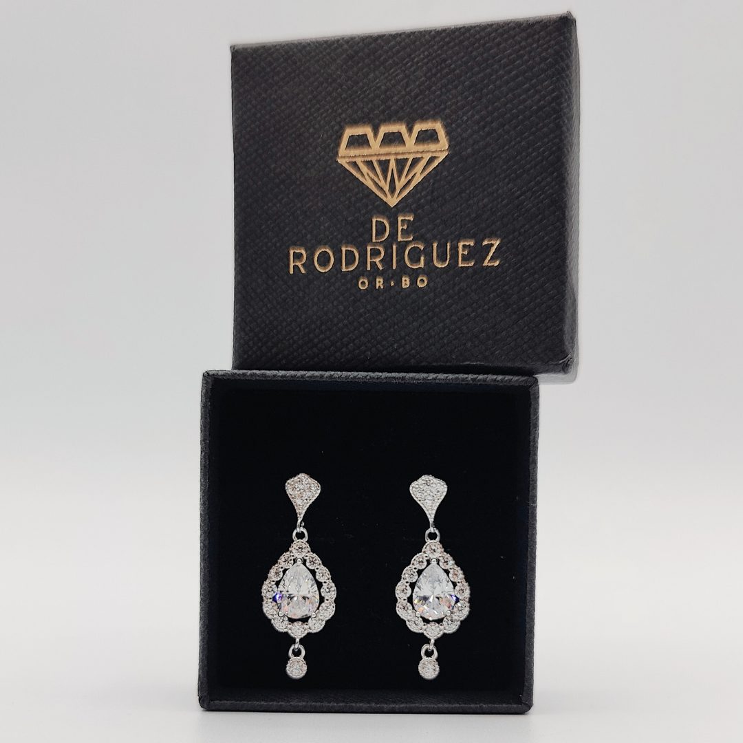 Este elegante pendiente colgante presenta un diseño atemporal inspirado en el estilo vintage. Elaborado en plata de ley 925, destaca por su forma de gota adornada con circonitas blancas que aportan un brillo sutil y refinado. El cierre de presión garantiza comodidad y seguridad durante todo el día.