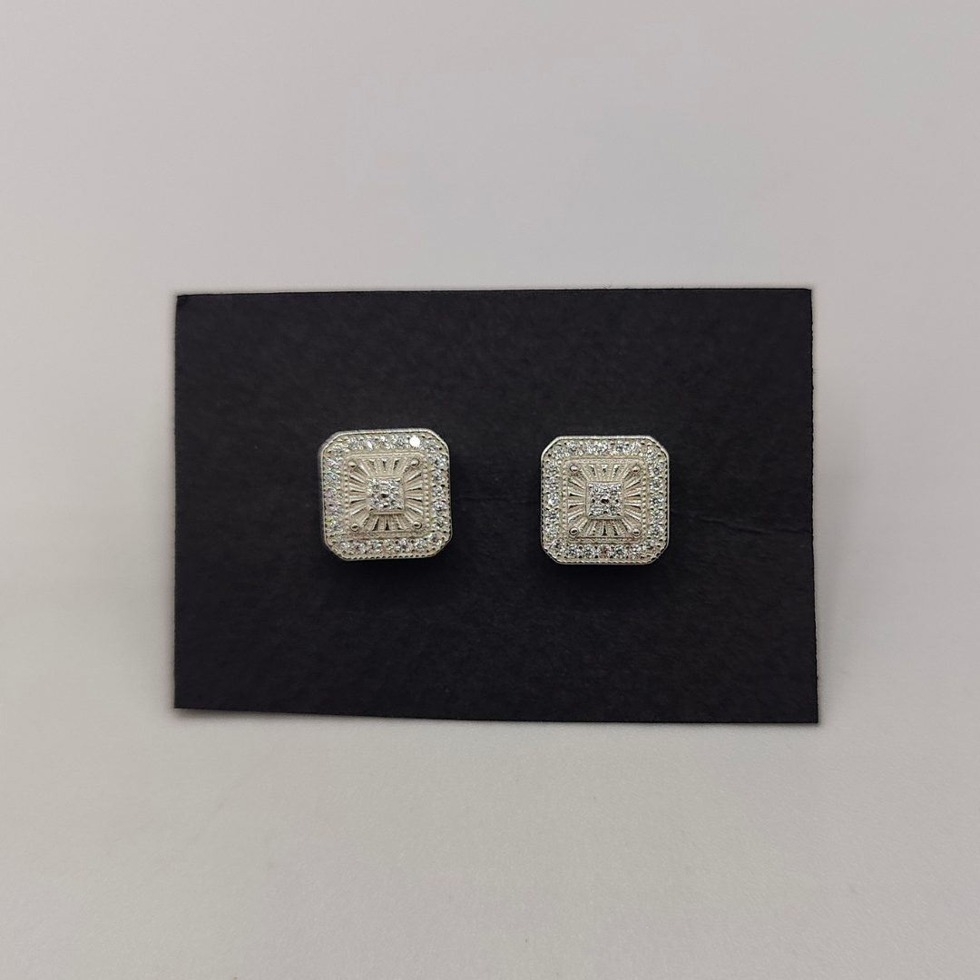 Este elegante pendiente cuadrado está elaborado en plata de ley 925, presentando un diseño sofisticado y atemporal. La pieza destaca por su circonita.