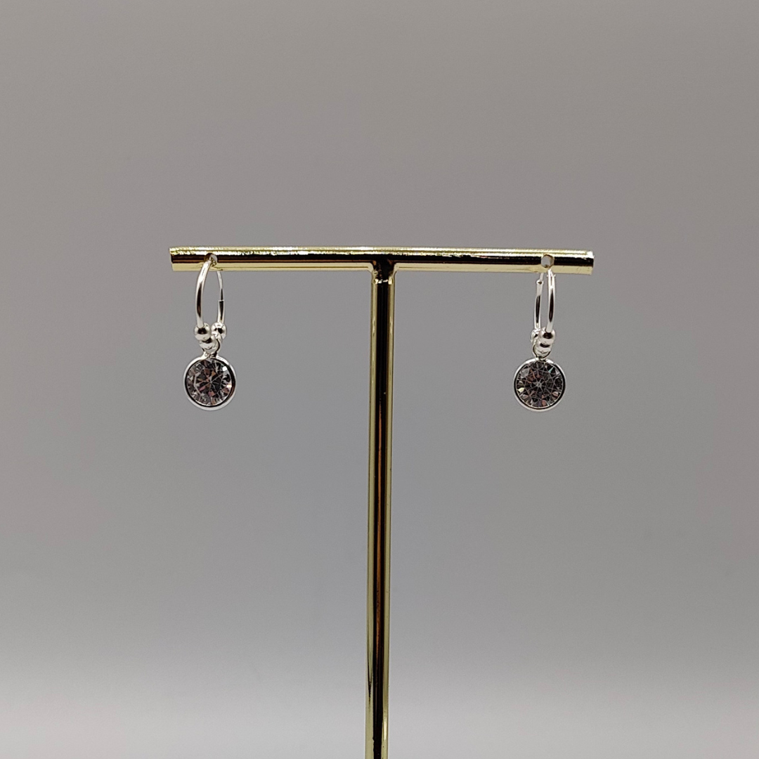 Realza tu estilo con nuestro elegante pendiente de aro, que cuenta con una deslumbrante circonita en forma de diamante colgando.
