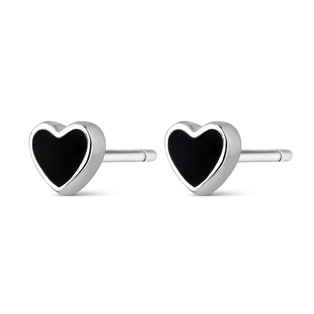 Pendiente de plata mini rodiado con corazón esmaltado – 4 mm, cierre presión