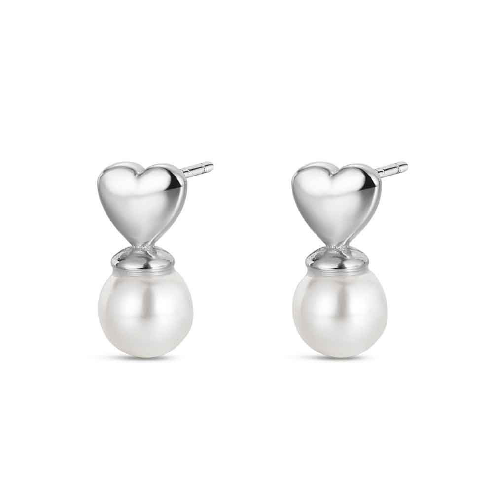 Románticos y sofisticados, estos pendientes están elaborados en plata de ley 925 con baño de rodio, que aporta brillo duradero y protege la joya del desgaste. Su diseño combina un dulce motivo de corazón con una perla blanca colgante, creando una pieza delicada y femenina, perfecta para cualquier ocasión.