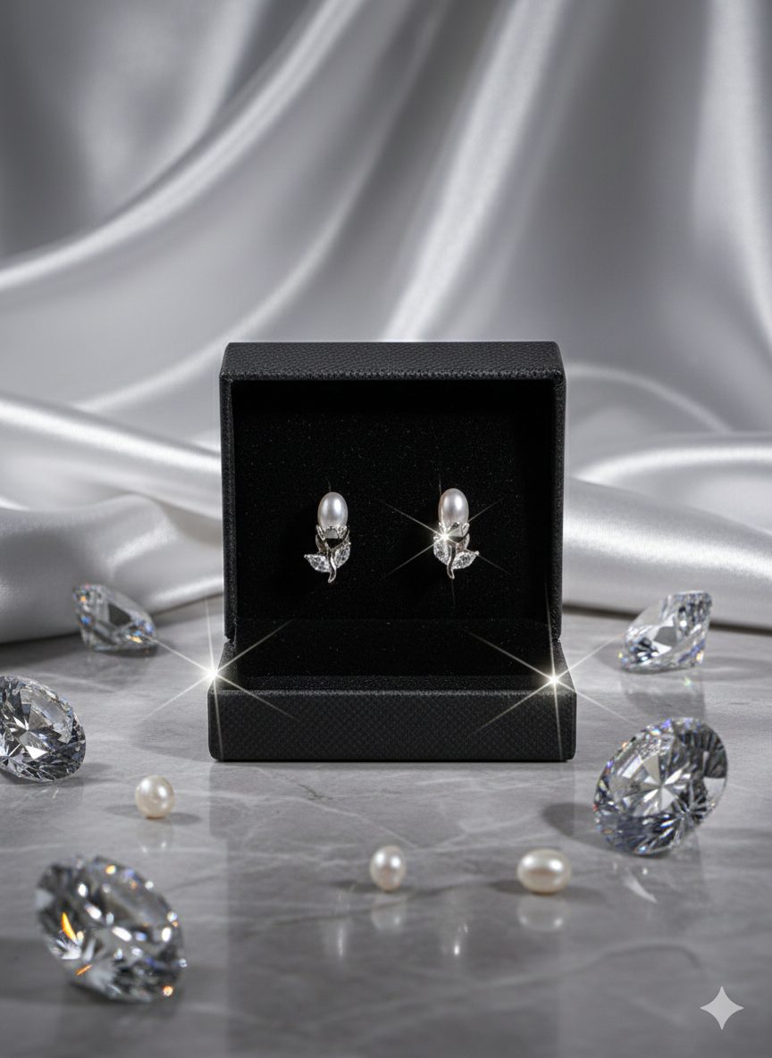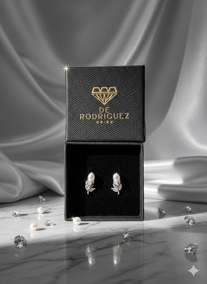 La perla central aporta luminosidad y clasicismo, mientras que las circonitas realzan el diseño con un brillo sutil y elegante. Con un peso de 1,26 g, es ligero y cómodo para el uso diario. El cierre a presión garantiza una sujeción segura y práctica durante todo el día.