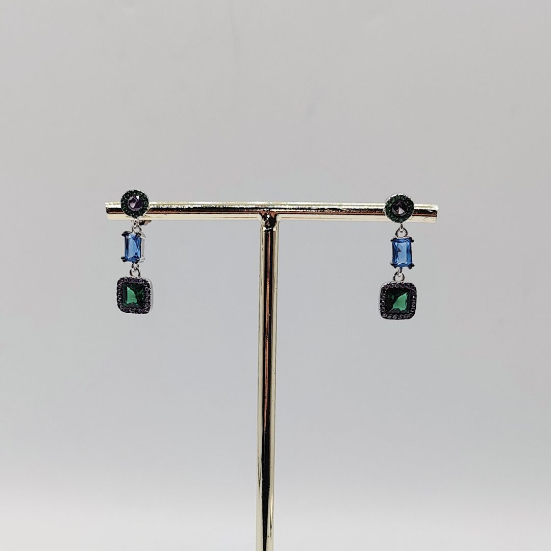 Pendientes colgantes de plata con circonitas lila, azul noche y verde