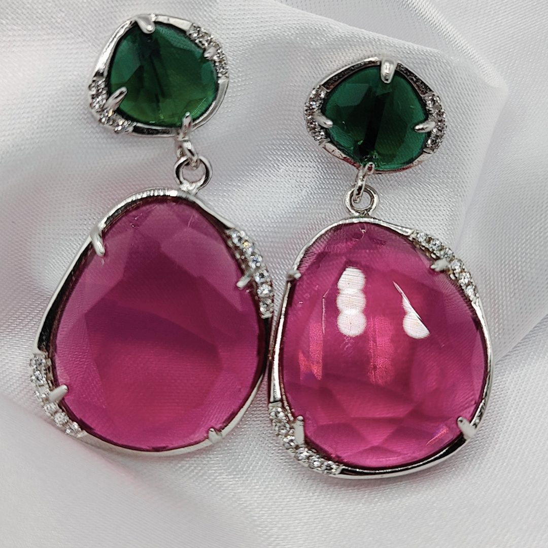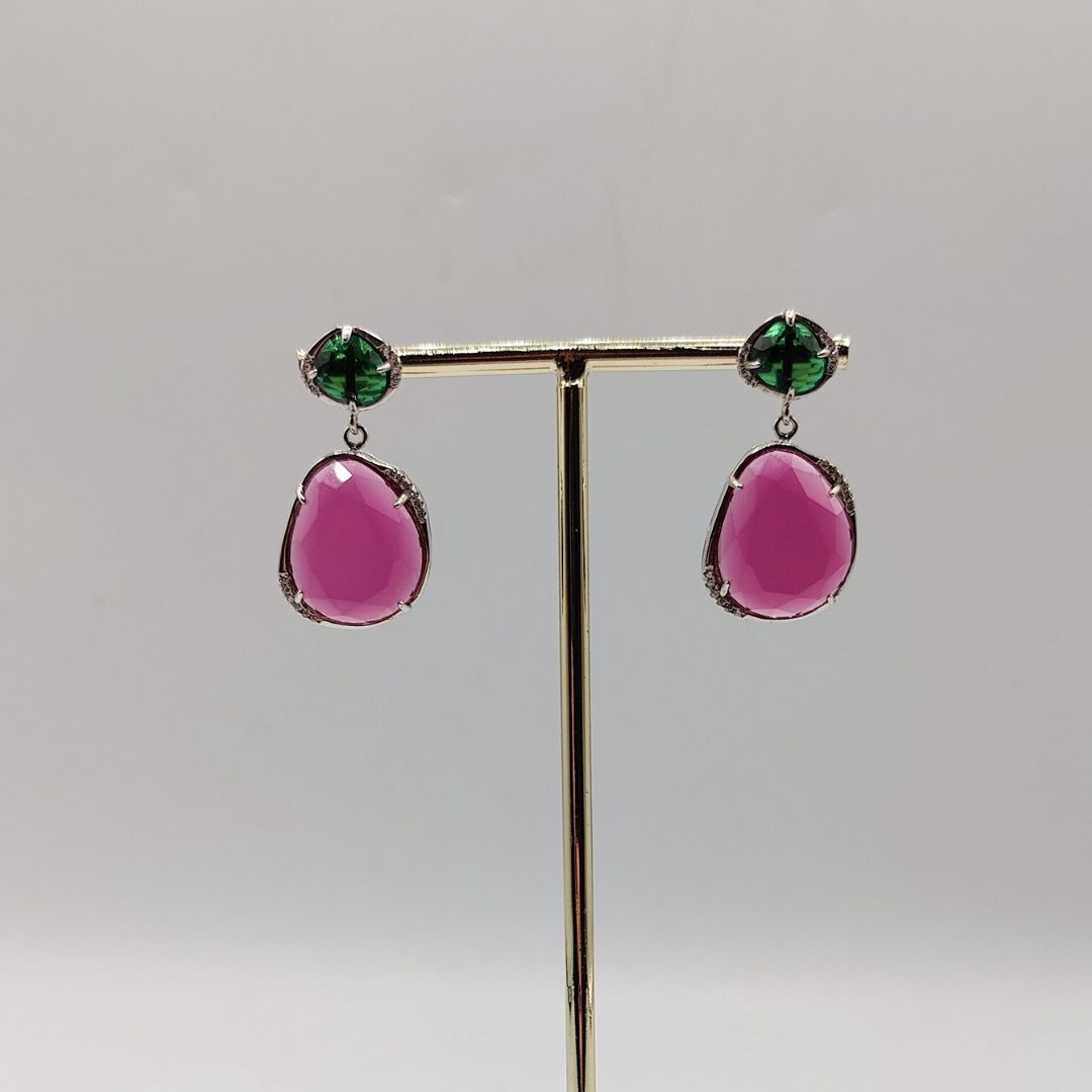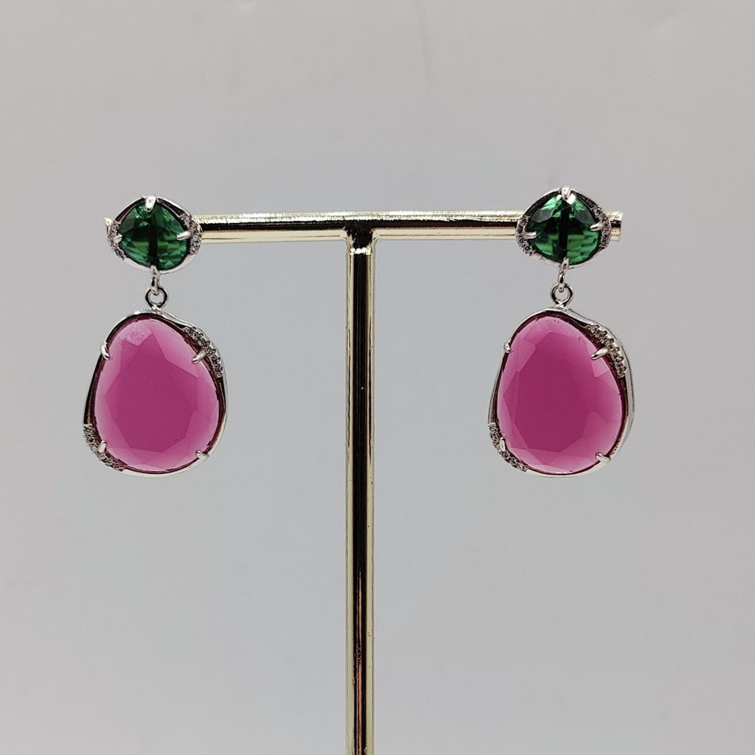 Pendientes colgantes de plata con circonitas verdes y rosas