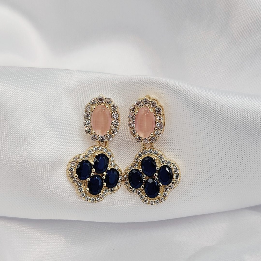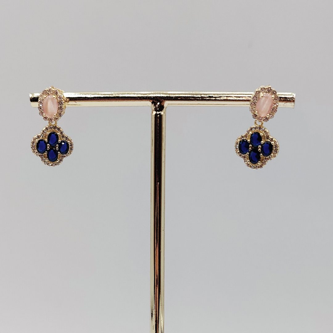 Pendientes colgantes de plata dorada con circonitas rosas y azules