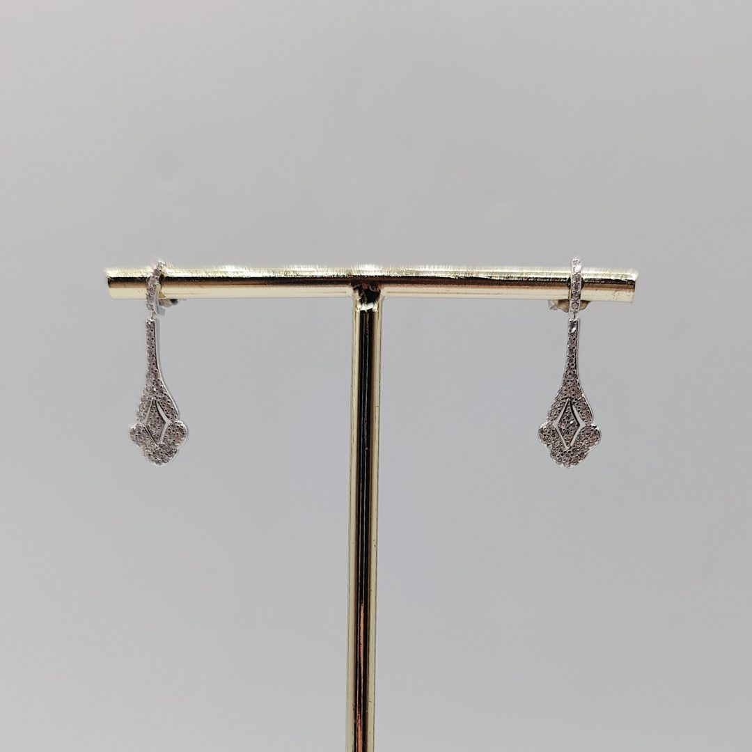Estos elegantes pendientes colgantes presentan un diseño inspirado en el estilo vintage, elaborados en plata de ley 925 y adornados con circonitas blancas que aportan un brillo sutil y refinado.