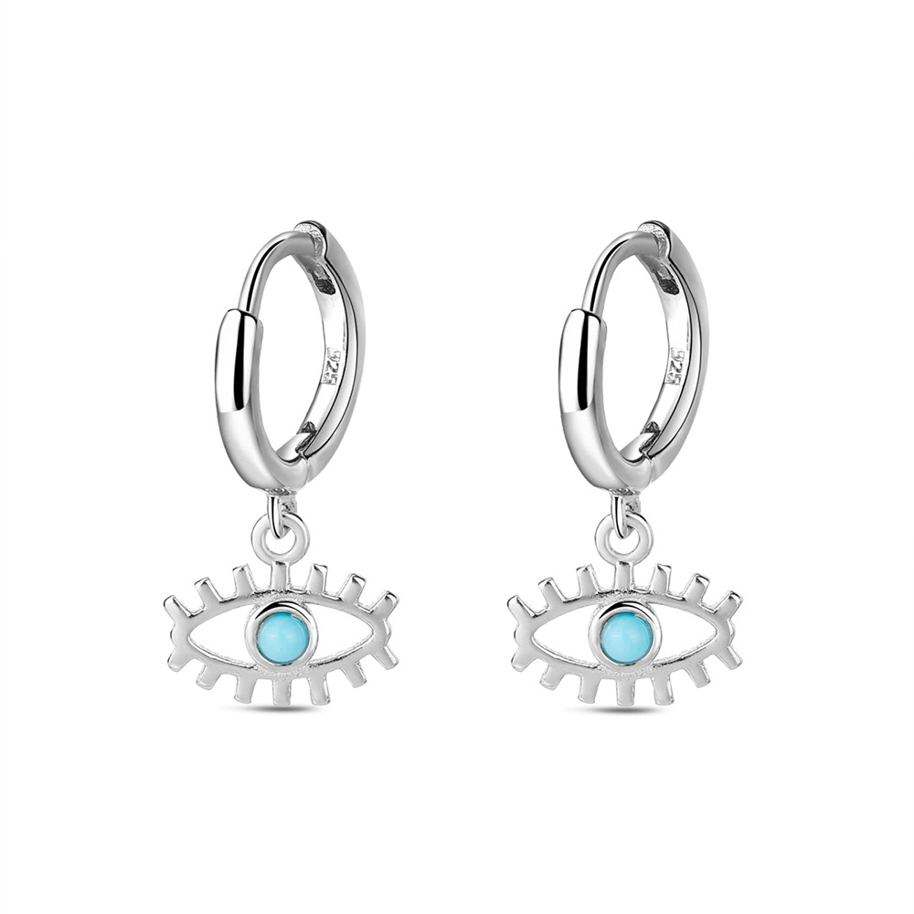 Pendientes de Aro en Plata Rodiada con Ojo y Piedra Turquesa