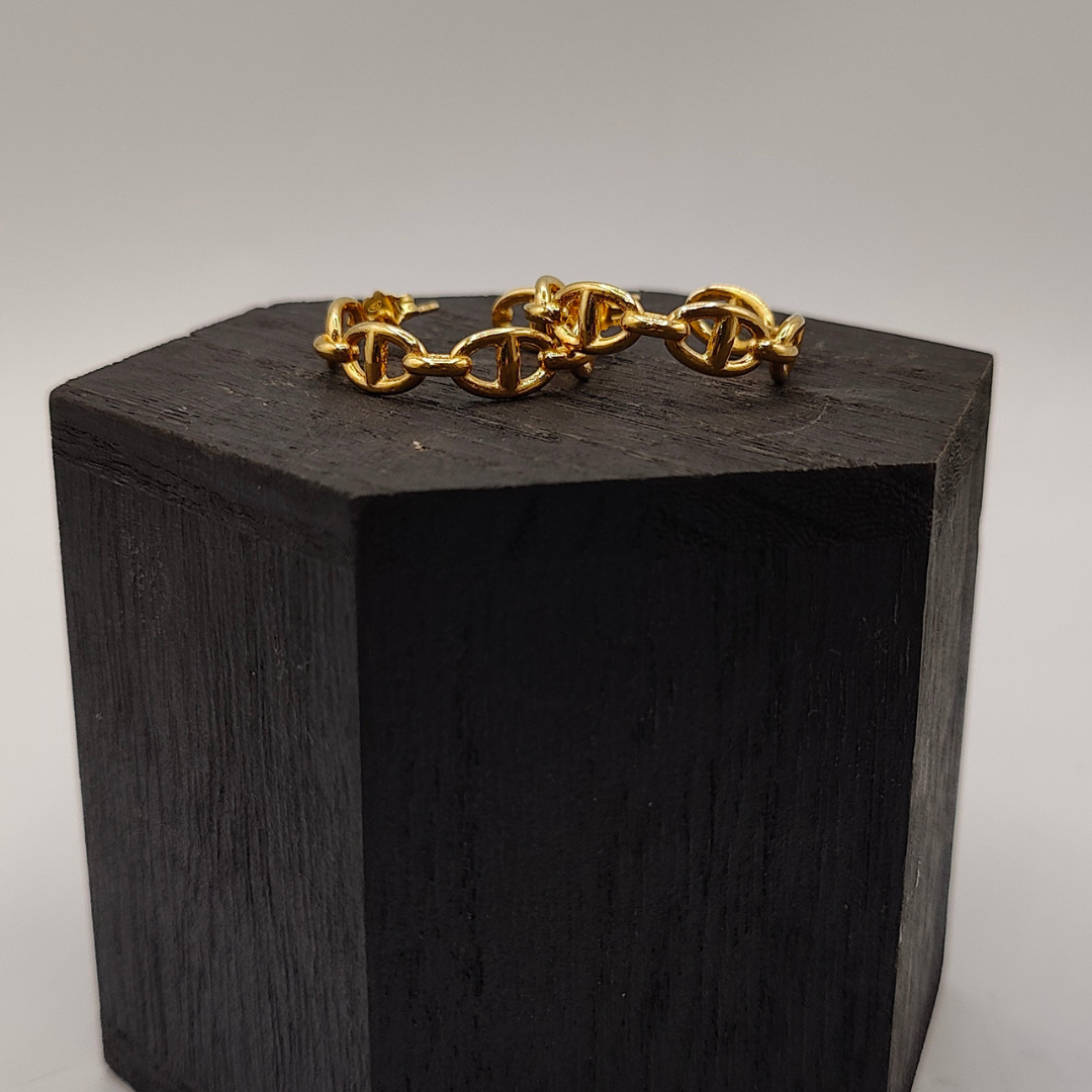 Añade un toque de lujo y sofisticación a tu estilo con estos Pendientes de Aro Estilo Hermés en plata dorada . Inspirados en el elegante diseño de la icónica marca.
