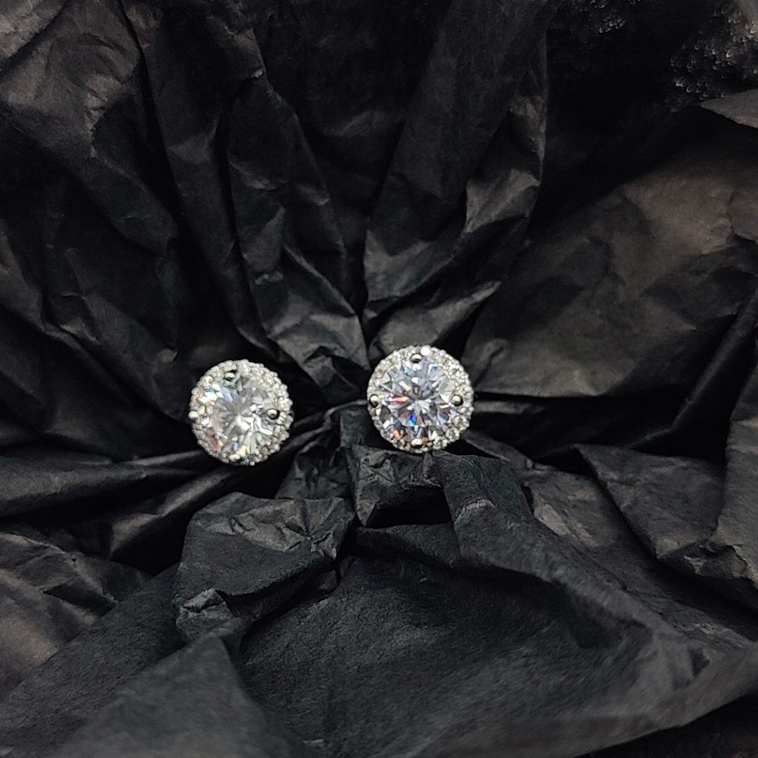 Pendientes de Circonitas en Plata con Cierre a Presión