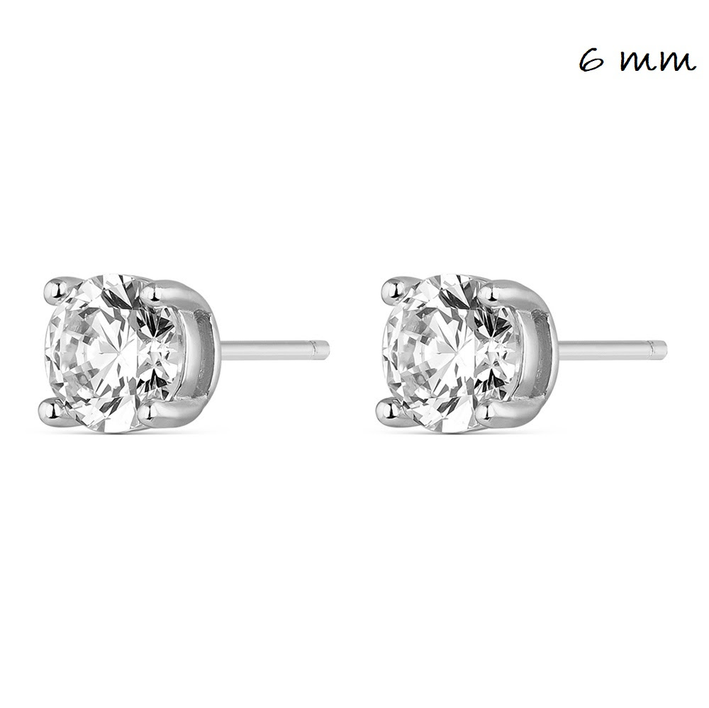 Pendientes de Plata Rodiada Chatón con Circonita y Garras – 6 mm (Cierre de Presión)
