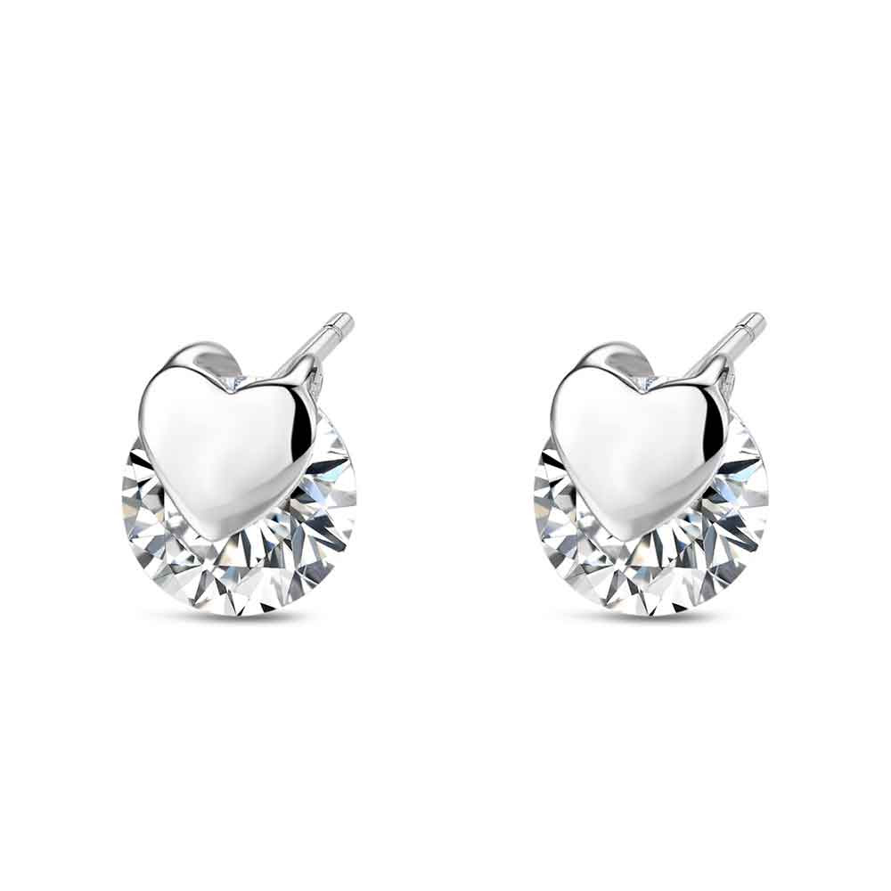 Pendientes de Plata Rodiada con Circonita y Corazón – 5 mm (Cierre de Presión)