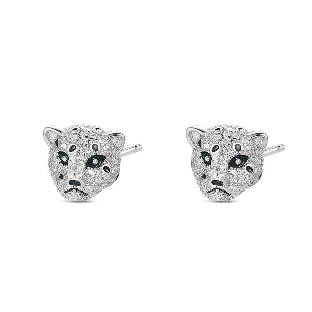 Pendientes de Plata Rodiada Pantera con Circonitas Bicolor – 10 mm (Cierre de Presión)