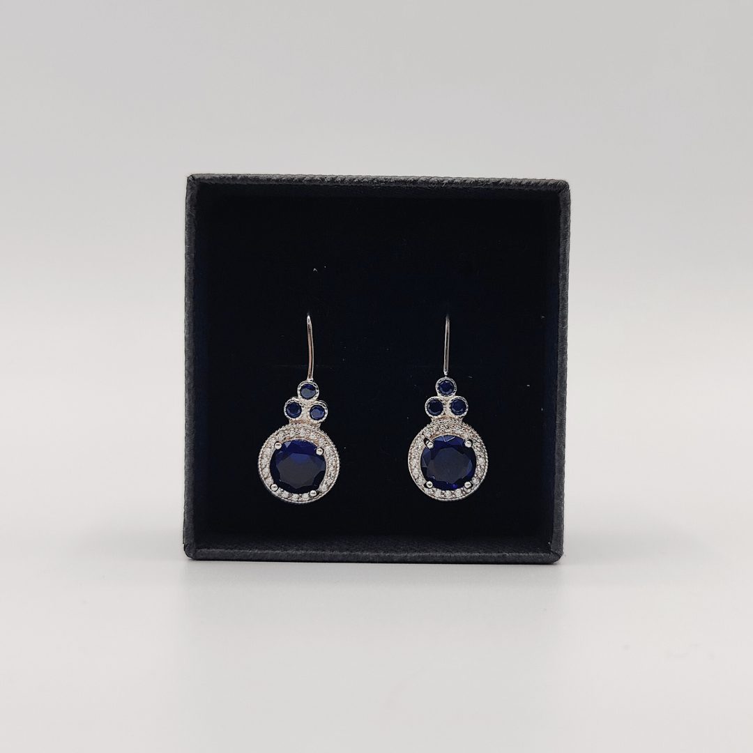 Estos elegantes pendientes presentan un diseño atemporal inspirado en el estilo vintage. Elaborados en plata de ley 925, destacan por una circonita central en tono azul noche
