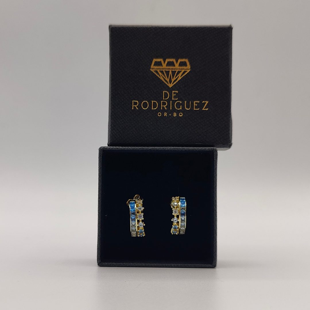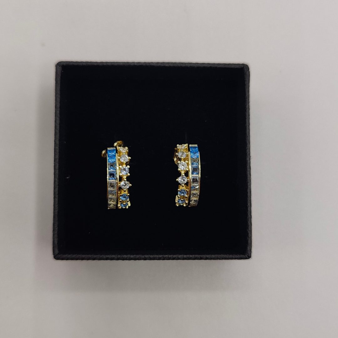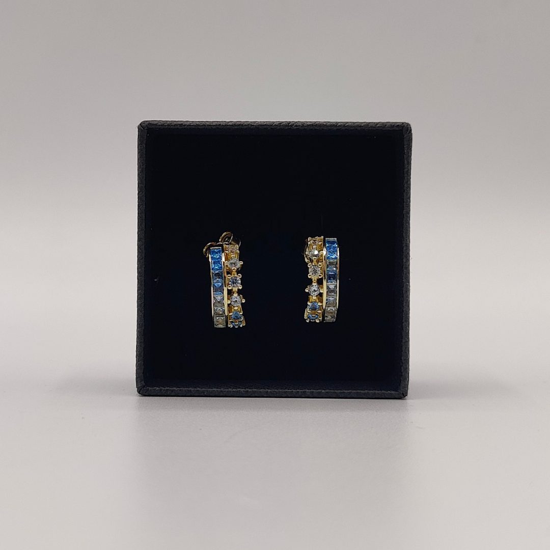Pendientes semi aro doble con circonitas en tonos azules