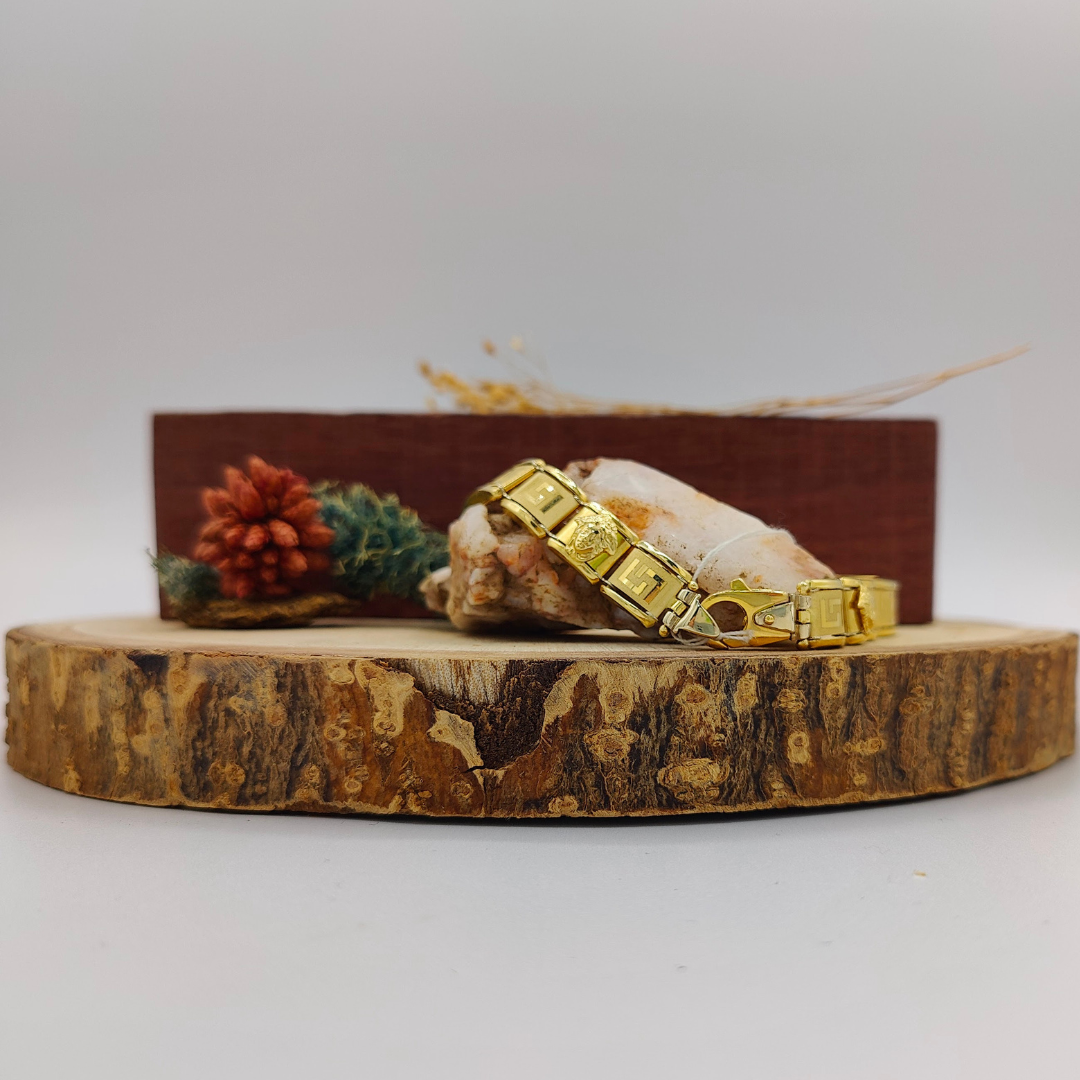 Esta pulsera presenta una exclusiva combinación de piezas alternas con el icónico rostro de Medusa y el logotipo de la marca, creando una declaración de moda audaz y distintiva.