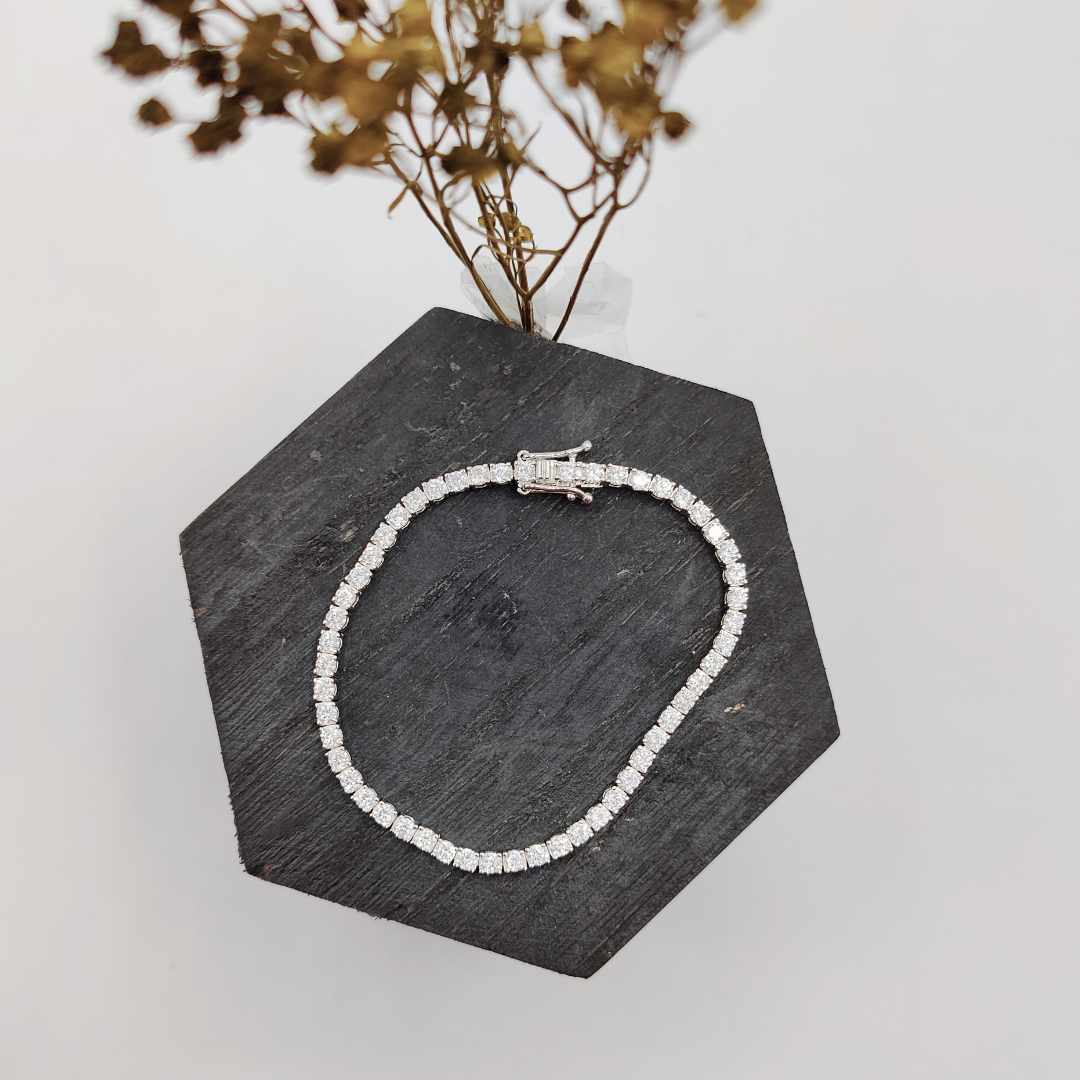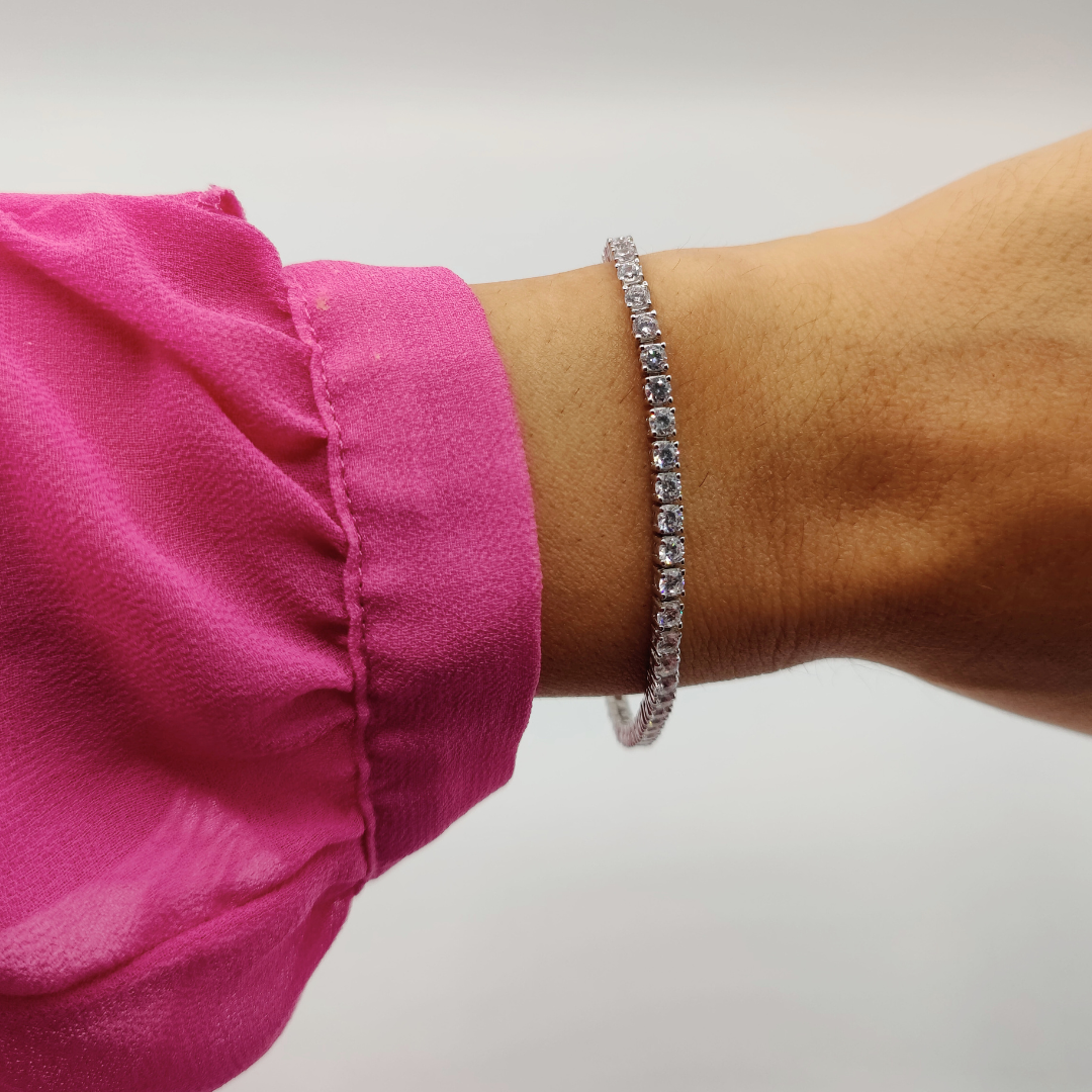 La pulsera articulada de plata, con cada eslabón adornado por una circonita, es una pieza que brilla con elegancia y sofisticación.