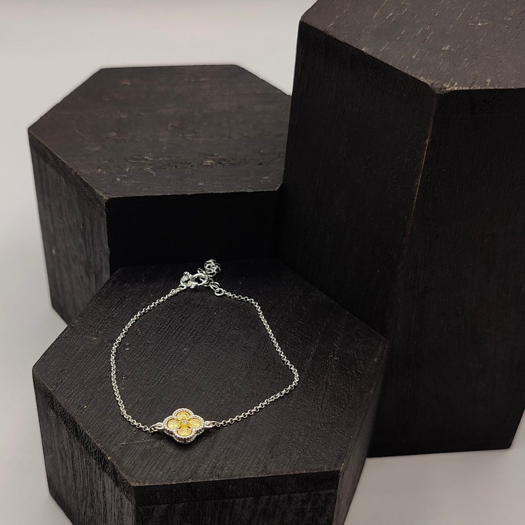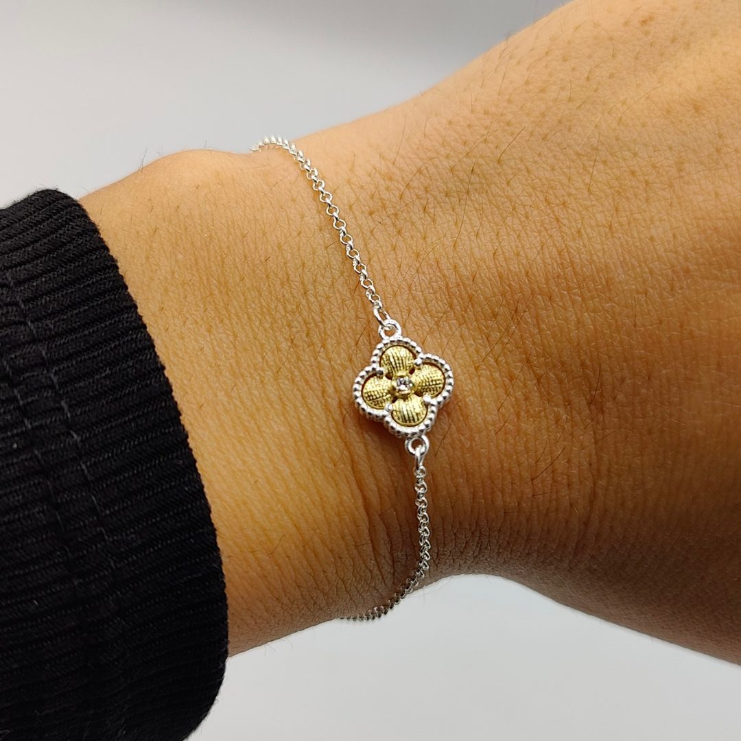 Pulsera con Flor Van Cleef en Plata Chapada en Oro