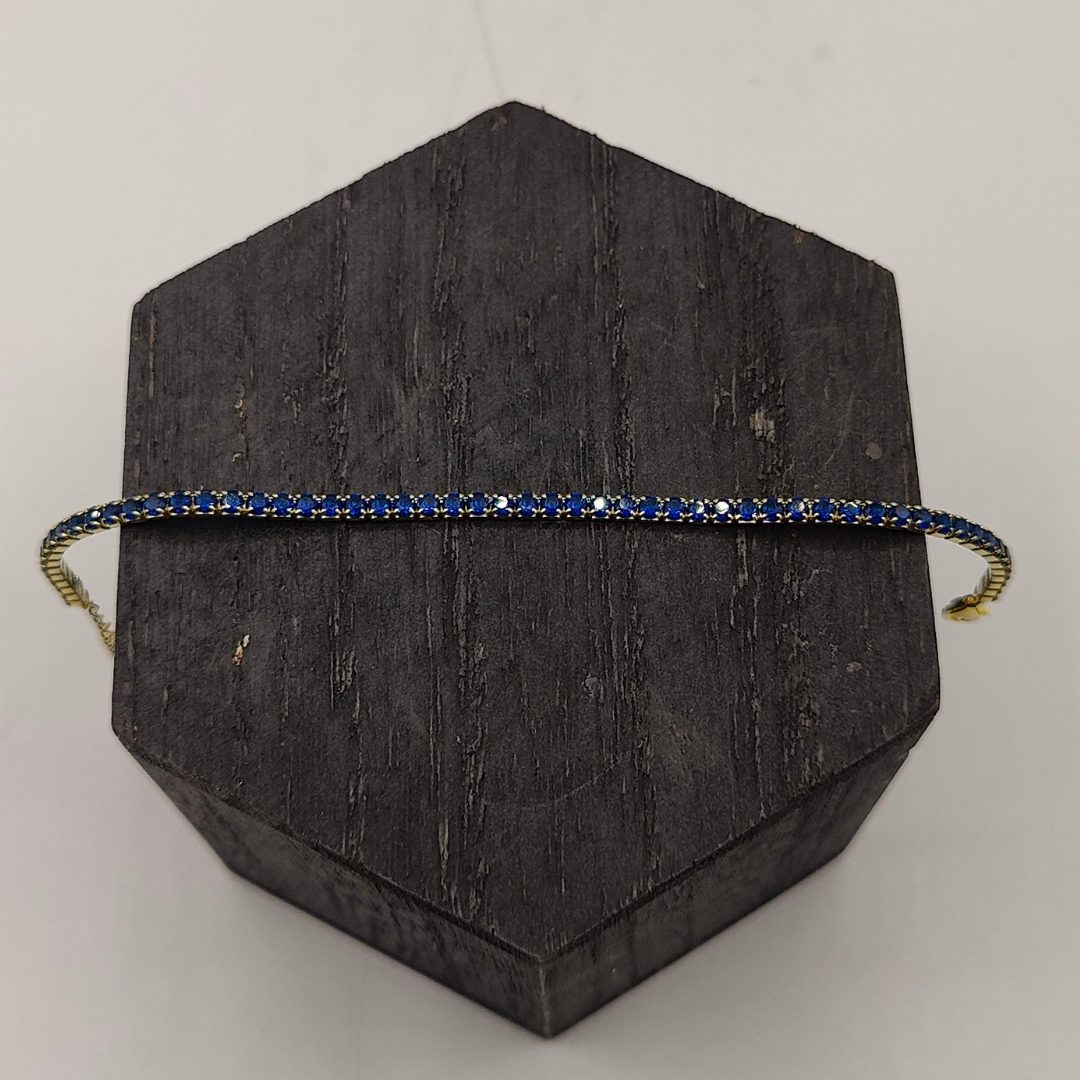 Pulsera de Plata Chapada en Oro Estilo Riviera con Circonitas Azul Noche