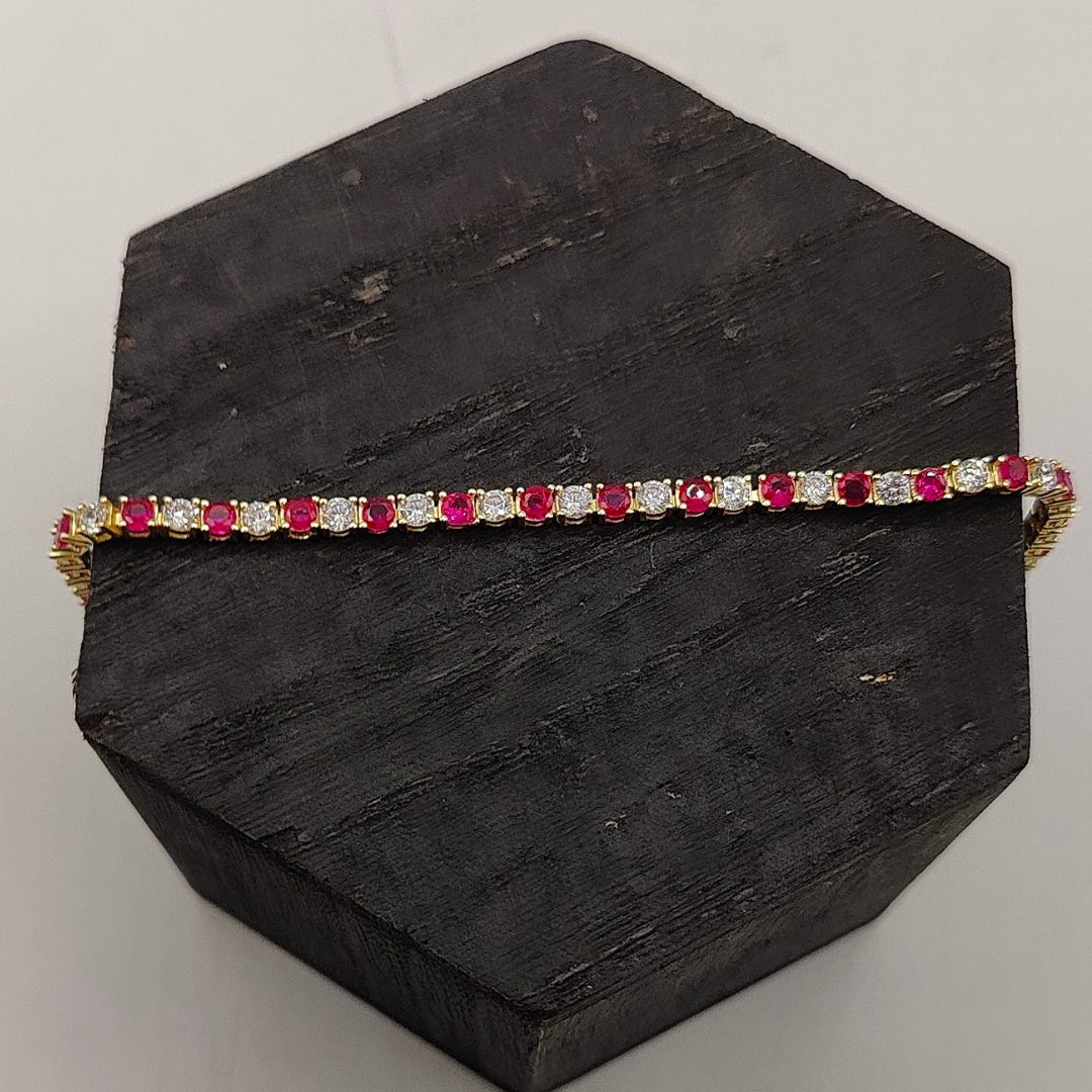Pulsera de Plata Chapada en Oro Estilo Riviera con Circonitas Fucsias y Blancas