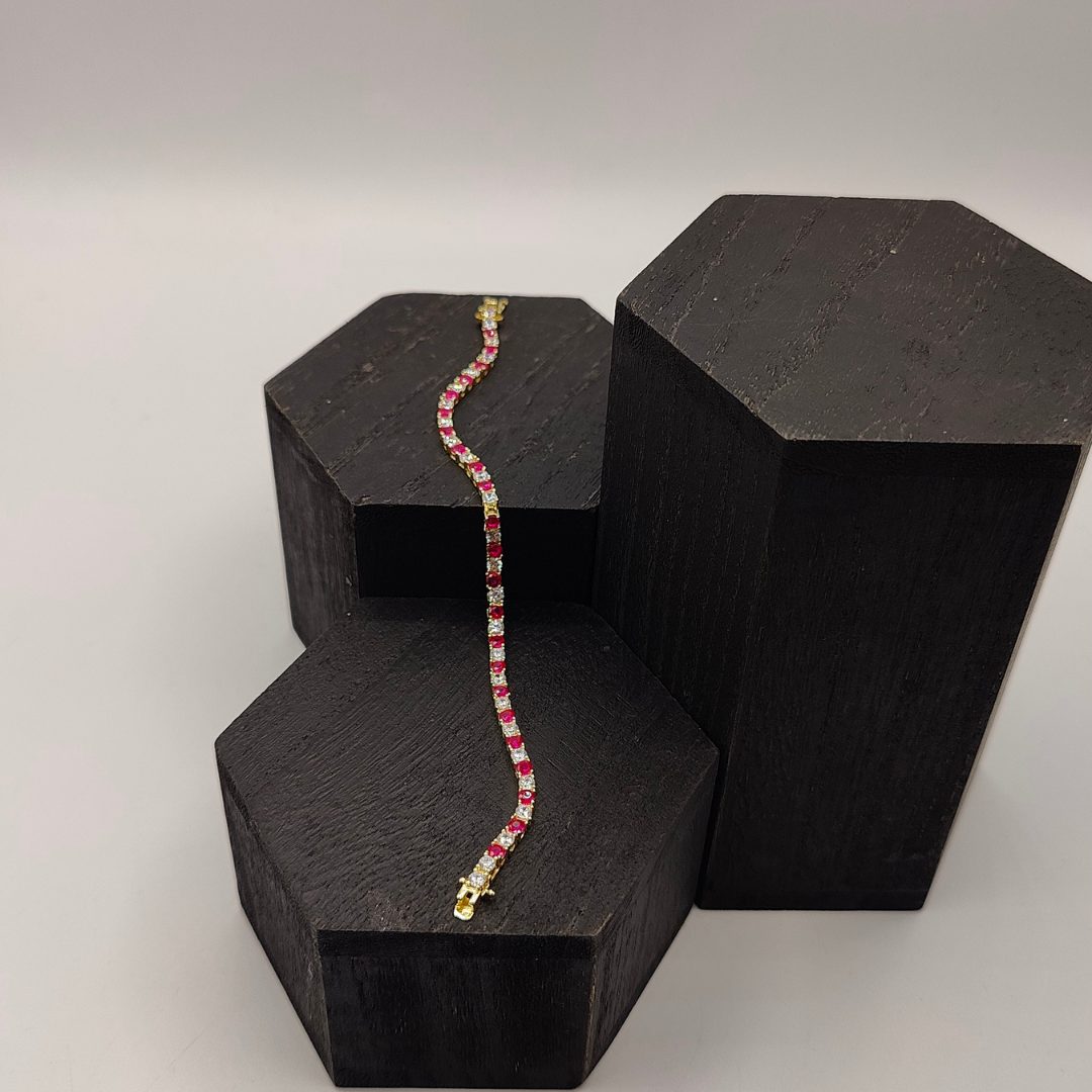 Déjate cautivar por el brillo y la sofisticación de nuestra pulsera estilo Riviera, elaborada en plata de ley chapada en oro para un acabado radiante y duradero. Sus deslumbrantes circonitas fucsias y blancas crean un contraste armonioso, reflejando la luz con cada movimiento. Perfecta para añadir un toque de glamour a cualquier look, desde el día a día hasta la ocasión.