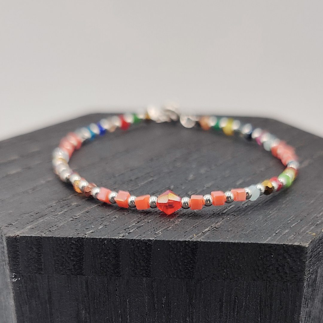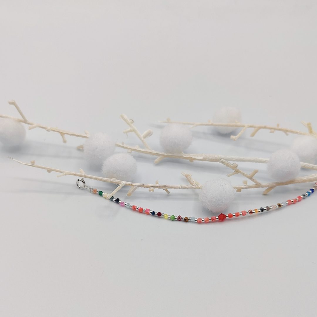 Pulsera de Plata con Bolitas de Colores Redondas y Cuadradas