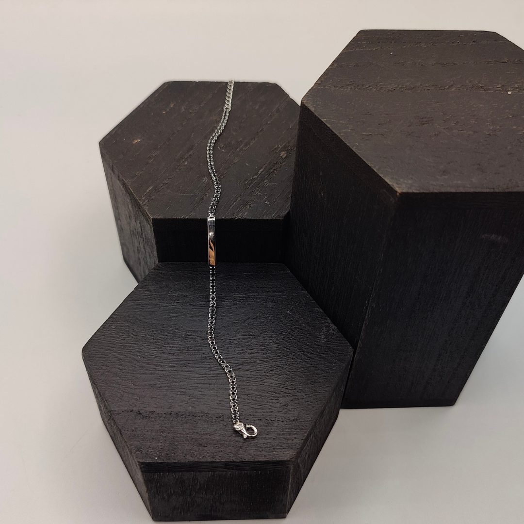 Un símbolo de recuerdos inolvidables y elegancia atemporal. Esta pulsera, elaborada en fina plata de ley, presenta un diseño riviera con la placa de «no me olvides», realizado por el brillo profundo de sus circonitas negras. Perfecta para quienes buscan una joya con significado, sofisticada y versátil, ideal para cualquier ocasión.