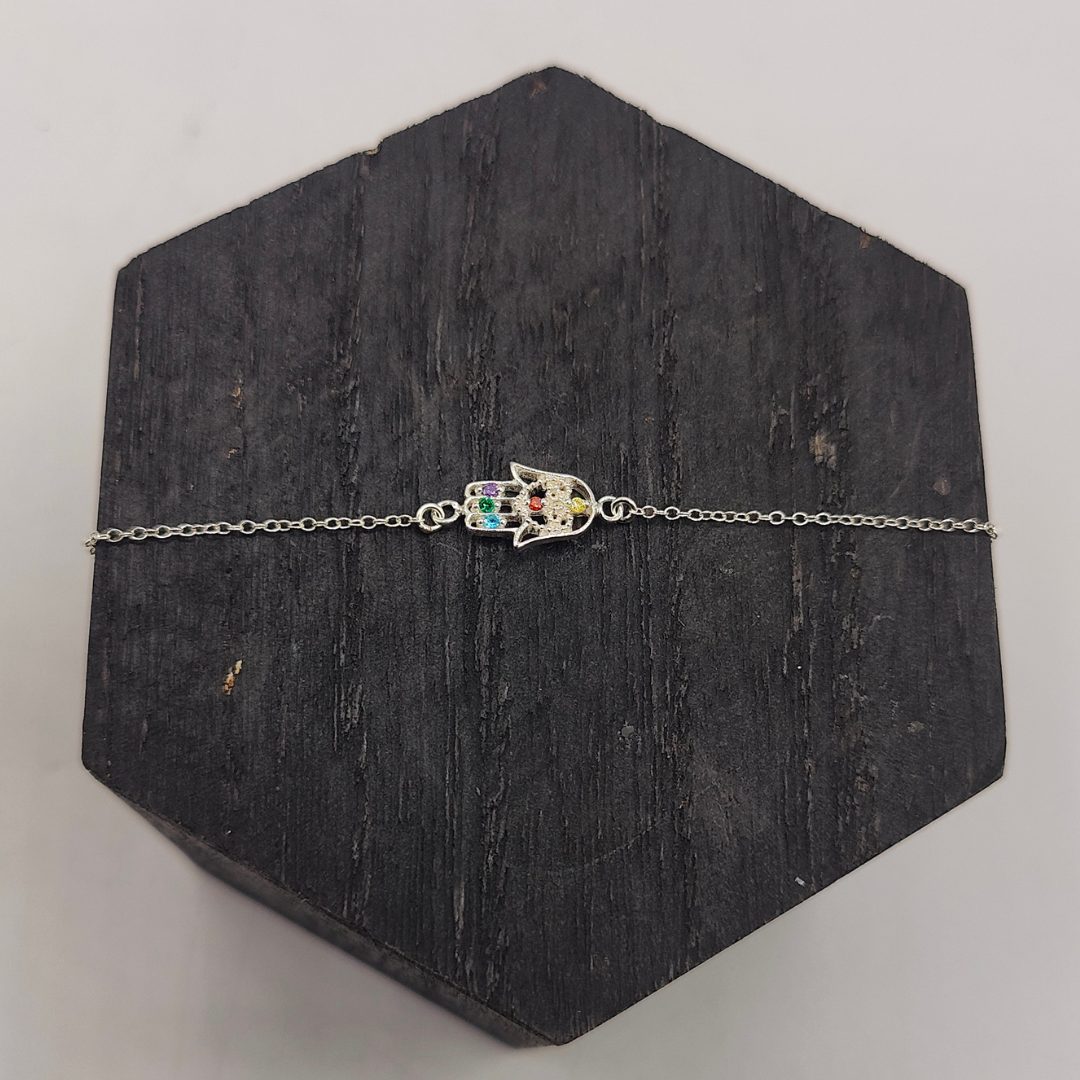 Pulsera de Plata con Mano de Fátima y Circonitas de Colores