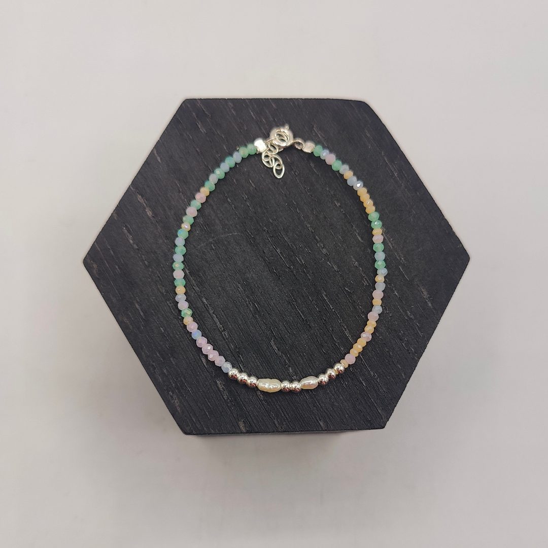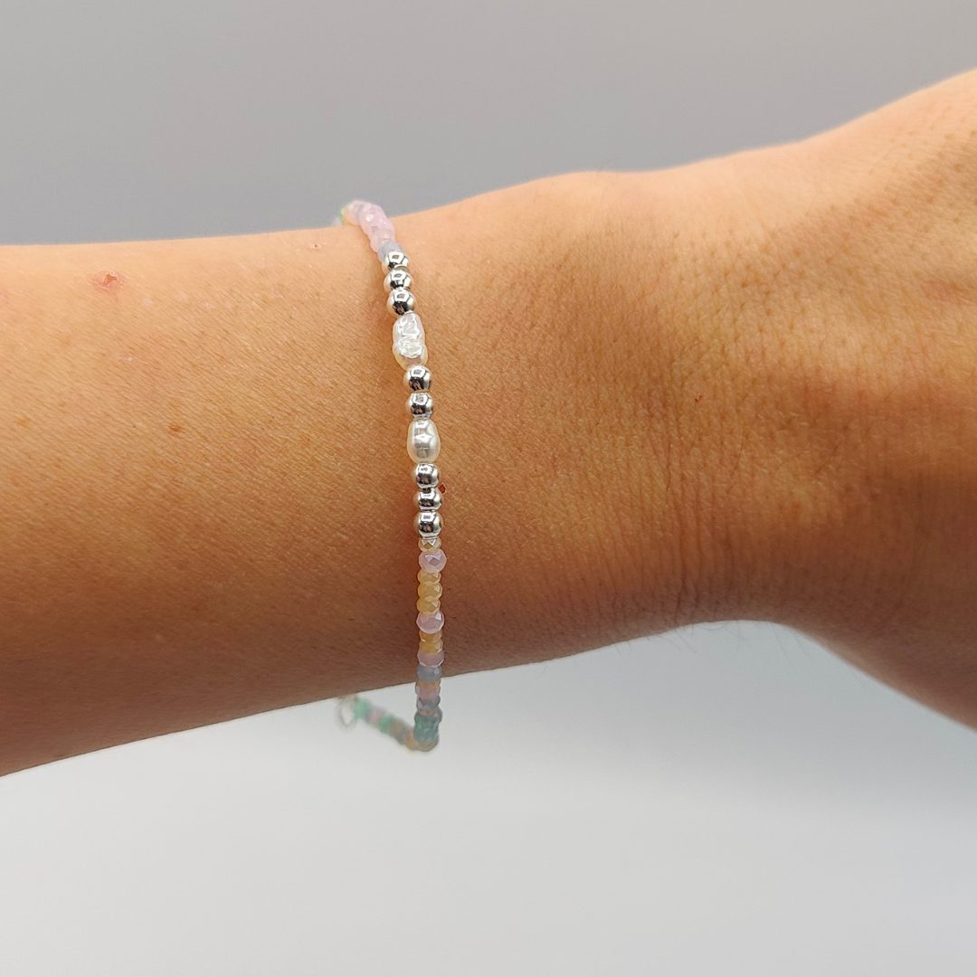 Pulsera de Plata con Piedrecitas de Colores Pastel y Perlas Naturales