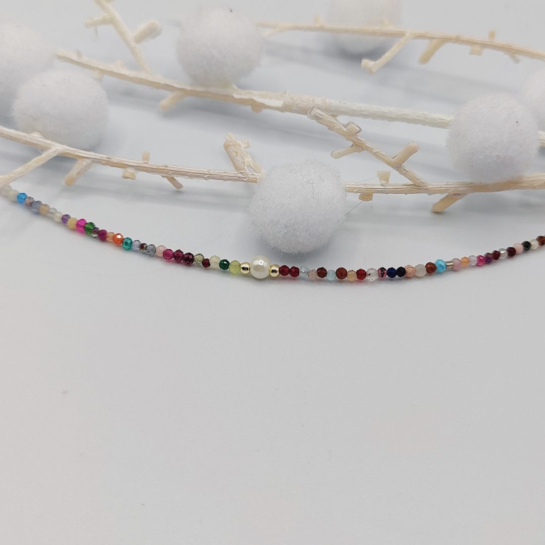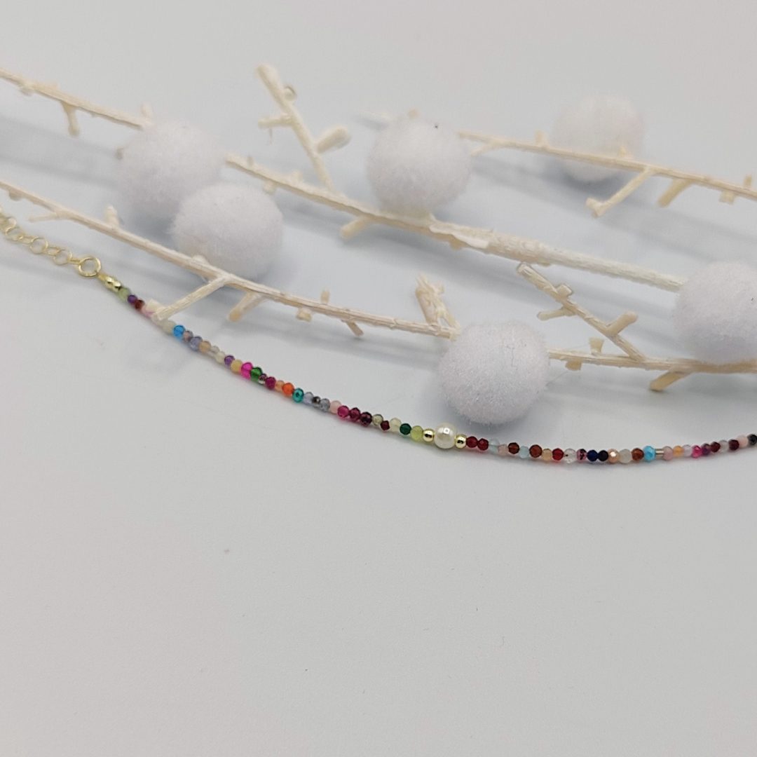 Esta pulsera de plata de ley 925 bañada en oro combina la calidez del dorado con la frescura de las piedras de colores, creando un diseño vibrante y alegre. En el centro, una delicada perla natural añade un toque de elegancia y sofisticación, contrastando perfectamente con las piedras multicolores. Ideal para darle un toque de luz y estilo a cualquier look, esta pulsera es perfecta para ocasiones especiales o para realzar tu estilo diario.